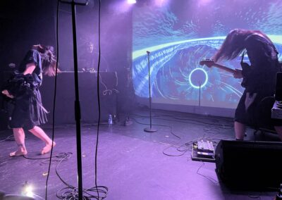 A következő kiszemelt, a japán csodabogár, a Violent Magic Orchestra volt a listámon (sajnos az In The Woods… pont egyidőben volt velük) így átsasszéztam a kb 3perc gyalogsétára levő másik hivatalos helyszínre, a már említett Goldie-ba. Az ott tartozkodásunk során ez amolyan törzshely / checkpoint-tá avanzsálódott Zero-val, ugyanis hibátlan norvég kézműves söröket lehetett itt beszippantani. Ennek szinte önfeláldozó módon eleget téve, gyors vettem is egyet. Maga a koncert lenn a klub pincéjében volt megtartva, hatalmas hosszú tér, ismét remek kialakítással és végtelenül aranyos személyzettel és emberekkel. Megvan annak azért a maga varázsa, hogy egy mandulaszemű szép hölgy csapolja neked Exodus pólóban a hűs neipa-t.