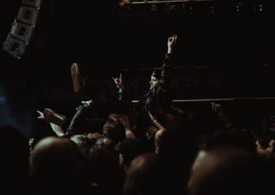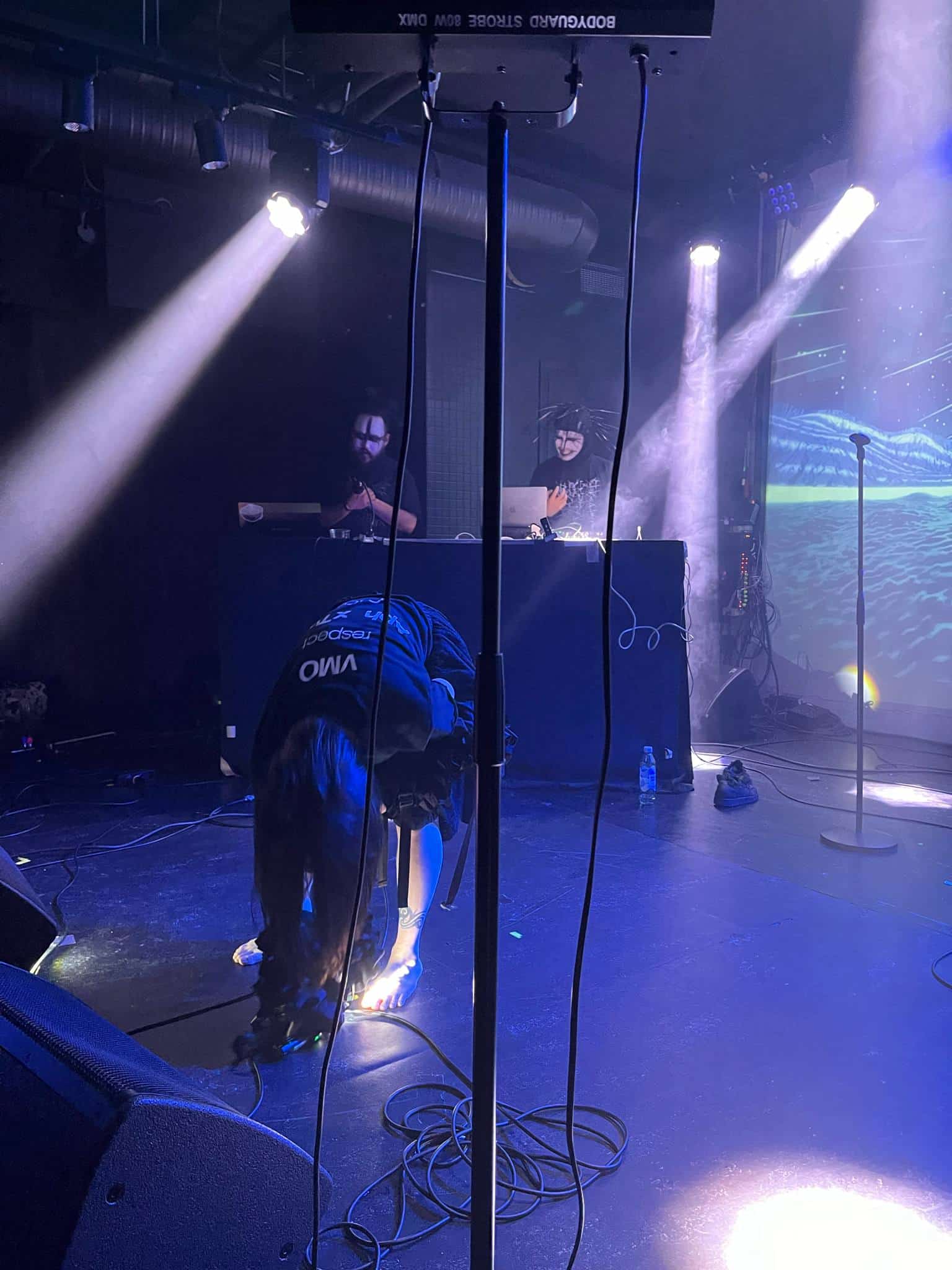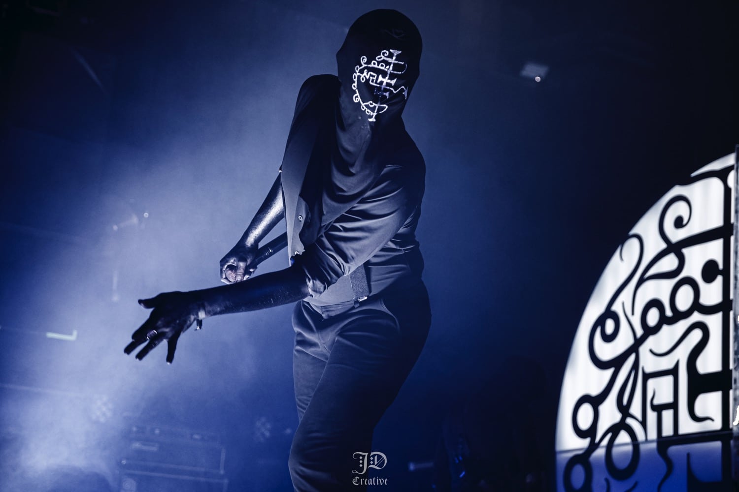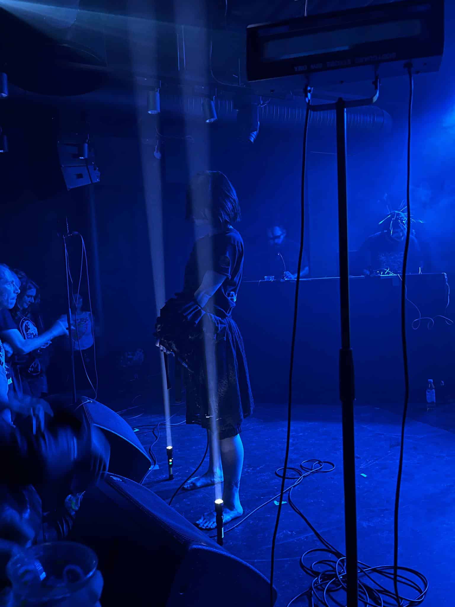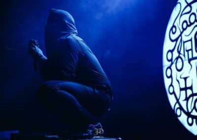 A John Cxnnor művészurat kb. olyan nehéz bekategorizálni mint mondjuk a VMO-t. Metalhoz nem sok köze van, ez inkább egyedi trap / drill , downtempo és noise keveréke. A kattant blak metal tónusban fogant vokálok miatt kapott egy fogcsikorgató dark industrial ízt a dolog, így némi Skinny Puppy utóhatás volt tetten érthető. Kaotikus fellépésük alatt konkrétan felforgatták a helyszínt, a felmásztak a vokalisták mindenhová, a projektorba kapaszkodtak, berohantak a közönség soraiba zászlókkal, miközben a háttérben a tesók vadul nyomták a beateket. Aki esetleg nem tudná a John Cxnnor a dán sludge szörnyeteg LLNN tagok projektje, Rasmus Sejersen és Kjetil Sejersen csúf szerelemgyermeke, ahol kiélhetik egyéb kreativitásukat. Nem tudom trackekre bontani a műsort, küldték ami a torkukon kifér, sőt homályos emlékeim szerint volt egy női vokalista feat is, aki szintén károgott, azzal a különbséggel, hogy állt az emberek vállán vagy tartották (nem tudom hogy) és onnan szórta az igét. Vad cucc volt, az biztos.
