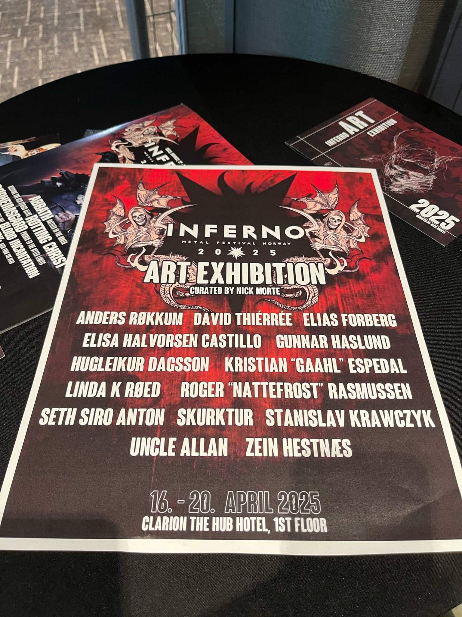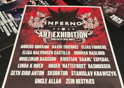 Csütörtök délelőtt a Clarion Hotelba mentem, ugyanis annak a konferenciaterme adott helyszínt a különböző szakmai / sajtós beszélgetéseknek, illetve az Inferno Art Exhibition is itt volt megtekinthető. Passok sikeresen felvéve, majd besétáltam és olyan művészek képeit / munkáit néztem meg, mint Anders Rokkum, David Thiérrée, Elisa Halvorsen Castillo, Hugleikur Dagsson, Seth Siro Anton vagy Kristian Espedal, akit többen Gaahl művésznéven ismernek.