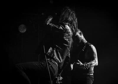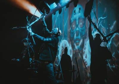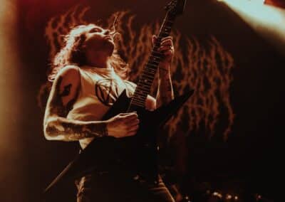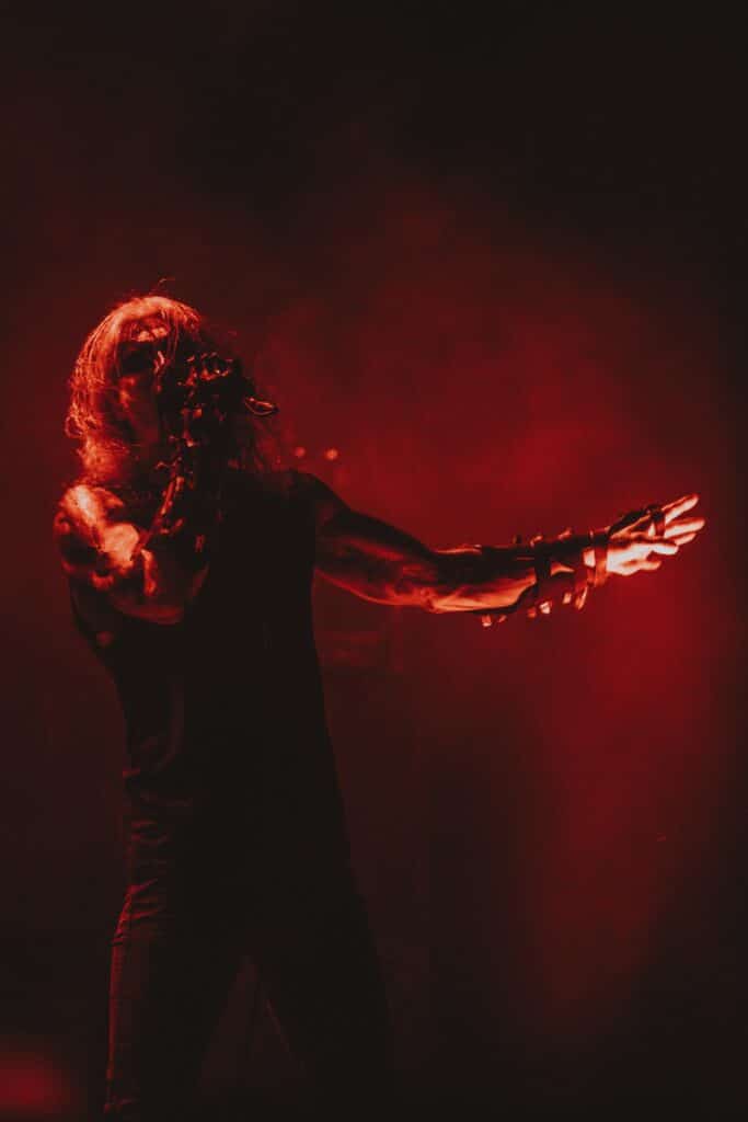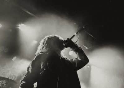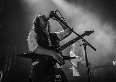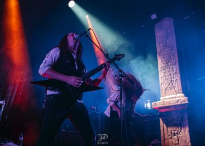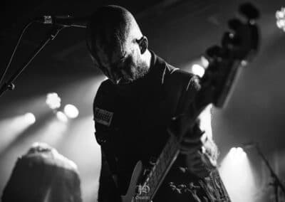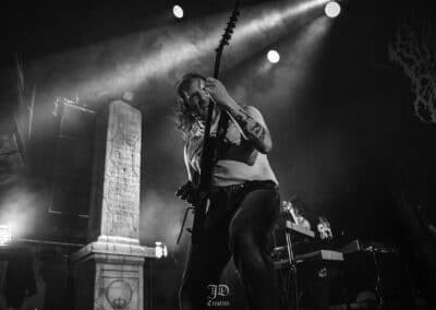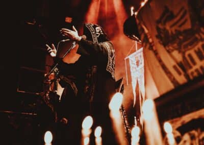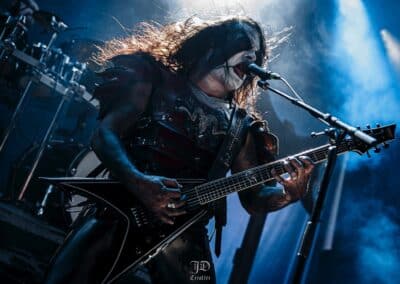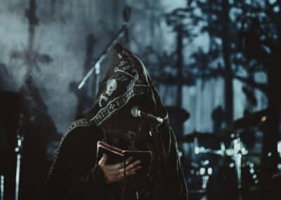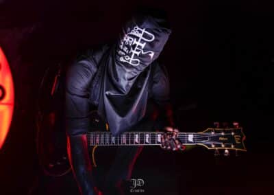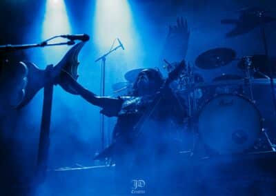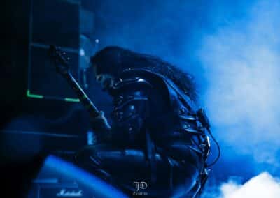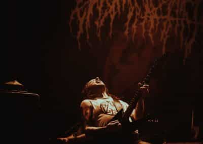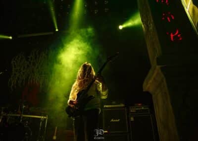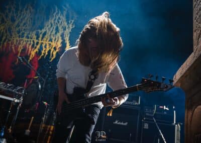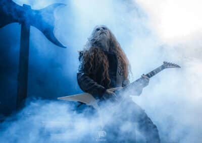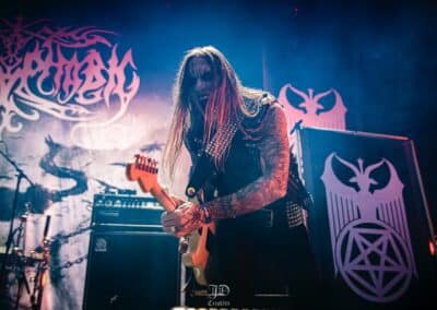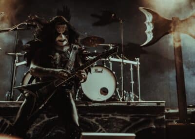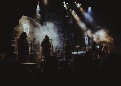 Mondanom sem kell, kint kellemes, hűvös volt az idő, igaz sokat szemerkélt az eső, a nap ritkán sütött ki, a pénteki nap programja pedig ismét elég sűrűnek ígérkezett, így a Brewgata után a Rockefellerben kezdtem. A portugál Gaerea lépett először színpadra, 16óra 30 perckor (mindig pontosak voltak a kezdések), ezer éve szerettem volna őket elcsípni – az alkalom adott volt. Olyan vehemens módon robbantak be a porondra, hogy beleremegett az épület. Az évek során ügyesen kinőtte magát a csapat vizuálisan, mind a ruhák és a színpadi kellékek terén, tudatosan felépítve az egészet. A szétnyitható óriási állósigil közepén volt a dobosuk, a többiek meg a dobozok tetején álltak, felválltva, hol füstben hol stroboszkóp sortűzben. Őszinte leszek – ez az arcmaszkos / kamásli a fejre húzva image nekem nem gyere be, túlságosan mesterkélt, a ráfestett Asmodeus-sigil ellenére sem érzem annyira húú de eredetinek. Oké, értem, hogy valamivel elő kell rukkoli, ami baromi nehéz, meg el kell ugye adni a zenét, ami szintén nehéz egy olyan szcénában, ahol minden sarkon jobbnál jobb black-death-death-grind-stoner-sludge és ezek keveréke zenekarok állnak százával, de hogyha valami jó, az jó és akkor az működni fog. A Gaerea esetében remek dalszerzőkről beszélhetünk, a számaik impulzívak, mondjuk nekem ez már inkább szimplán, sötét extreme metal, mint black / death, de ez legyen az én véleményem. A produkciójuk amúgy hibátlan volt, élvezhető, volt íve / felépítése az egésznek, egy begyakorolt performaszt láthattunk tőlük. Az énekesük furcsa, pantomim mozdulatait én valahogy máig nem tudom hova tenni, szerintem full cringe kategória, az időközben új gitároshölggyel operáló csapat, ettől függetlenül rutinosan teljesített. A gitár sound náluk különösen harapott, konkrétan leszakította a fejed (vonalból tolták, ahogy elnéztem), azt meg külön díjaztam, hogy az emeletről gyakorlatilag premier plánban láthattam a műsort. Szerencsére ismét jönnek Magyarországra is hamarosan.