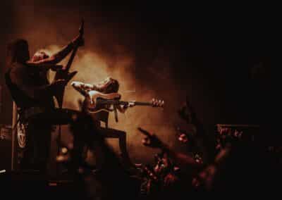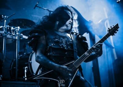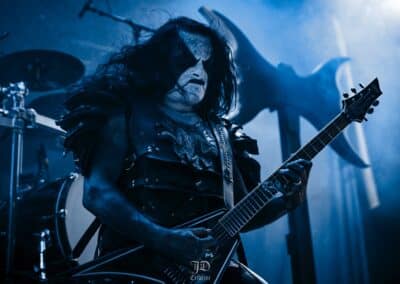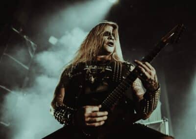 Ha ez nem lett volna elég a beteljesedéshez, pár neipa elfogyasztása után átballagtunk a Rockefellerbe, hogy belekukkantsunk az Abbath performanszába. Micsoda remek döntés volt – olyan nosztalgiavonat feeling ragadott el, mint még soha. Láttam már őket ebben a formában, amikor Magyarországon jártak (ebben a cikkben írtunk a koncertről), akkor annyira nem jött át mint itt. Most kristálytiszta hangzás, kivehető számok-dallamok, minden egyes hang a helyén, profi előadásmód. Gitárosuk, Ole André Farstad hihetelenül tehetséges gitáros, játékában nem volt hiba, vele csináltunk interjút tavaly, mely itt olvasható. Abbath hozta a szokásos karakterét, a crabwalk mondjuk elmaradt, viszont volt hogy a spéci maszkban énekelt, vicsorgott, grimaszolt. Gyakorlatilag egy Immortal-tribute dalcsokrot kaptunk tőlük. Nebular Ravens Winter, Mountains Of Might, The Call of The Wintermoon, Blashyrkh és a Sun No Longer Rises nálam nagyon betalált. Az Immortal nagy hatással volt ránk anno gyerekként, ezt itt magában, a szülővárosban megtapasztalni, a black metal ütőerén, valami leírhatatlan érzés.