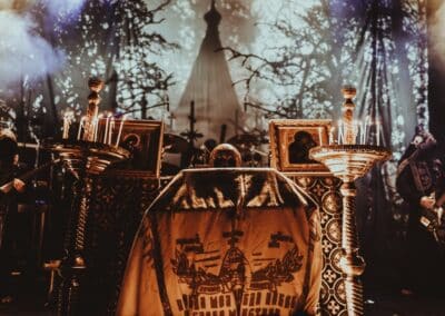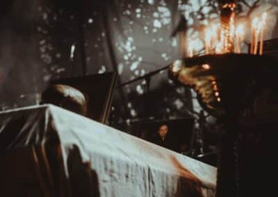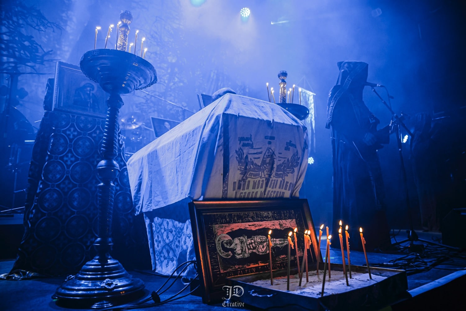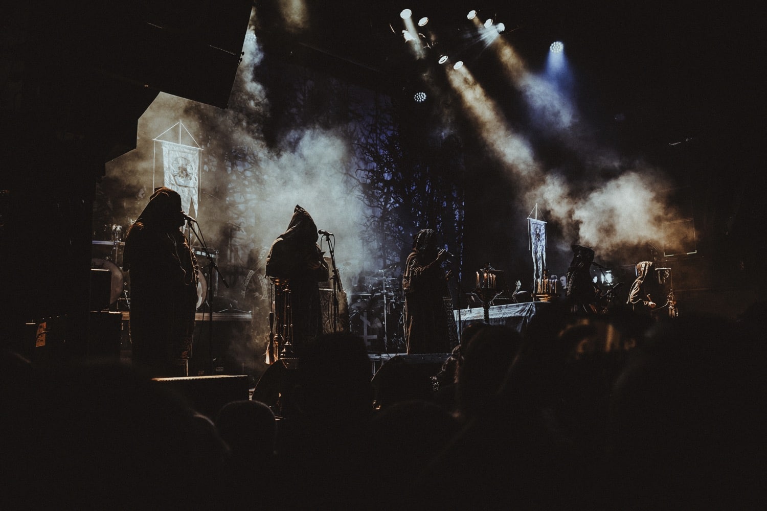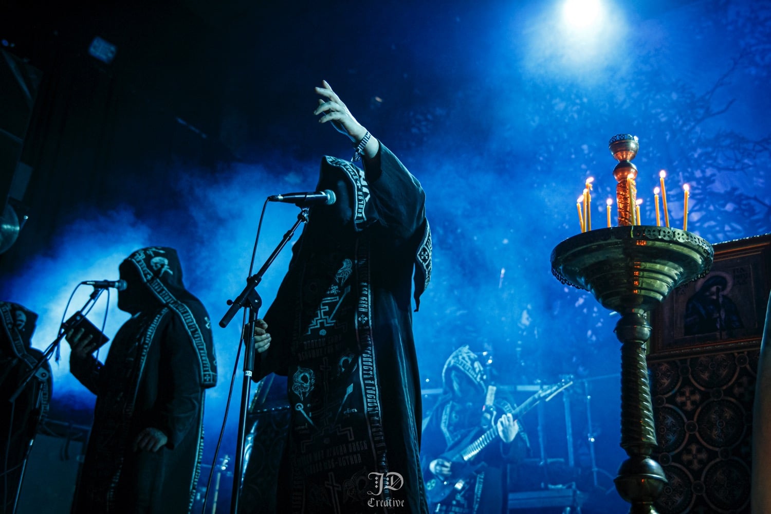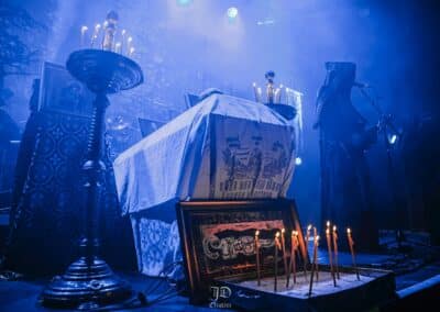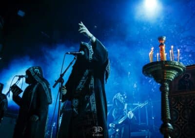 Annyira magával ragadott a kanadaiak hangulata, hogy kivártam őket az elsőtől az utolsó lefogott hangig, és a lengyel Batushka szeánszára csak ezután mentem át a nagyterembe. Alig lehetett mozdulni a Rockefellerben, viszont a klub ötletes, lépcsőzetes kialakításának köszönhetően, mindig akadt egy olyan spot a hozzám hasonló alacsony embereknek, hogy gyakorlatilag mindent láttam, és át tudtam magam adni a koncertek élményének. Az eredeti, Krzysztof Drabikowski vezette true OG brigádot sosem láttam élőben, szerintem a Behemoth és a Mgla mellett a legsikeresebb lengyel formáció a black / death színtéren, nem véletlen a Litourgiya debüt közel 5 milliós (!) megtekintettsége sem a youtube-on. Az, hogy az egyik szektavezér, Bart Krysiuk kivált az első lemez után, majd létrehozta a Patriarkh-ot, az egy külön történet. Aki viszont nem ismerné a Batuskha-t, röviden-tömören: orthodox papuhákba, talárokba és csuklyába / arcokat eltakarva játszanak gregoriánus énekkel teletűzdelt black metalt, olyan fajta vizuálisan túltolt színpadképpel és dekorációval, ami tényleg templomok belsejét és egy misét idéz a hallgatóban. Nekem ez a fajta image már túl cheesy, oké, elismerem hatásos, de ha nem lenne mögötte ilyen hangszerelés és tudás, meg amilyen volumenű dalokat írtak anno, akkor rég sarkon fordultam volna. A középső emeleten találtam középen egy remek helyet, onnan néztem végig a celebrációt. Mindent egybevetve tüchtig volt, elhiszem, hogy sokakat magával ragad meg minden, engem már azért nem lehet ennyivel megvenni.