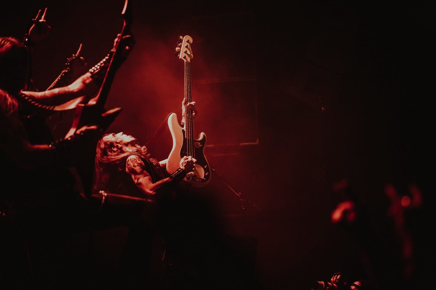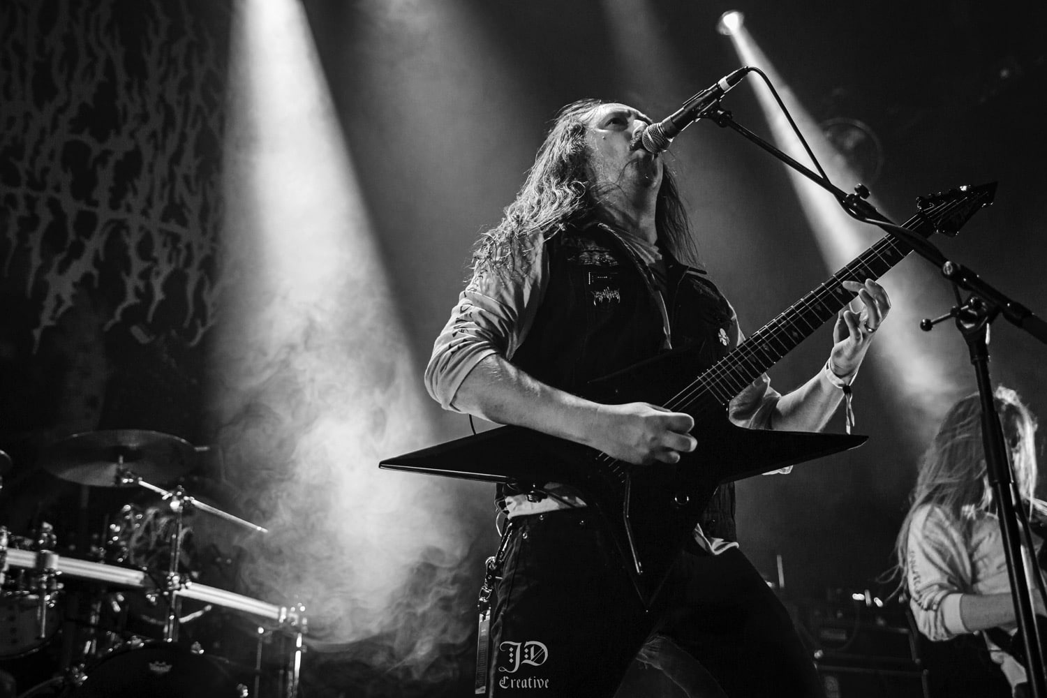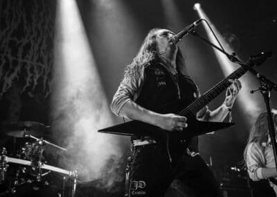 Némi átszerelés után, a következő csapat, a svéd death / black ikon Necrophobic vette uralma alá a Rockefellert. Mára egyetlen alapítótag, dobosuk Joakim Sterner maradt meg a bandából, de olyan kvalitású zenészekkel vette körül magát, hogy a Necrophobic szerintem a fesztivál top egyik legjobb koncertjét adta. Őrületes old-school vibe és rock and roll attitűd áradt belőlük, kinézetre Nifelheim vonal, true swedish metal warrior. Iszonyat brutálisan penge gitárosok, Sebastian Ramstedt és Johan Bergebäck csak úgy brillíroztak. Johan különösen olyan szólókat tekert oda, hogy csak pislogtam, full hidegrázás. Óriási a fazon. Énekesük Anders Strokirk mókás figurának tűnt, hozta persze az elvártakat, nekem egy fiatalkori, kevésbé megfáradt Ozzy Osbourne ugrott be róla. Állandó nyelvnyújtogatásokba meg ördögvillázásokba volt emberünk, nyomott brofistet az első sorban állókkal, baráti gesztus, hatalmas arc volt szerintem. A hangzásuk hibátlan volt, mintha időutazáson vettem volna részt, Svédország 90-es évek sötét death metal alvilágába.