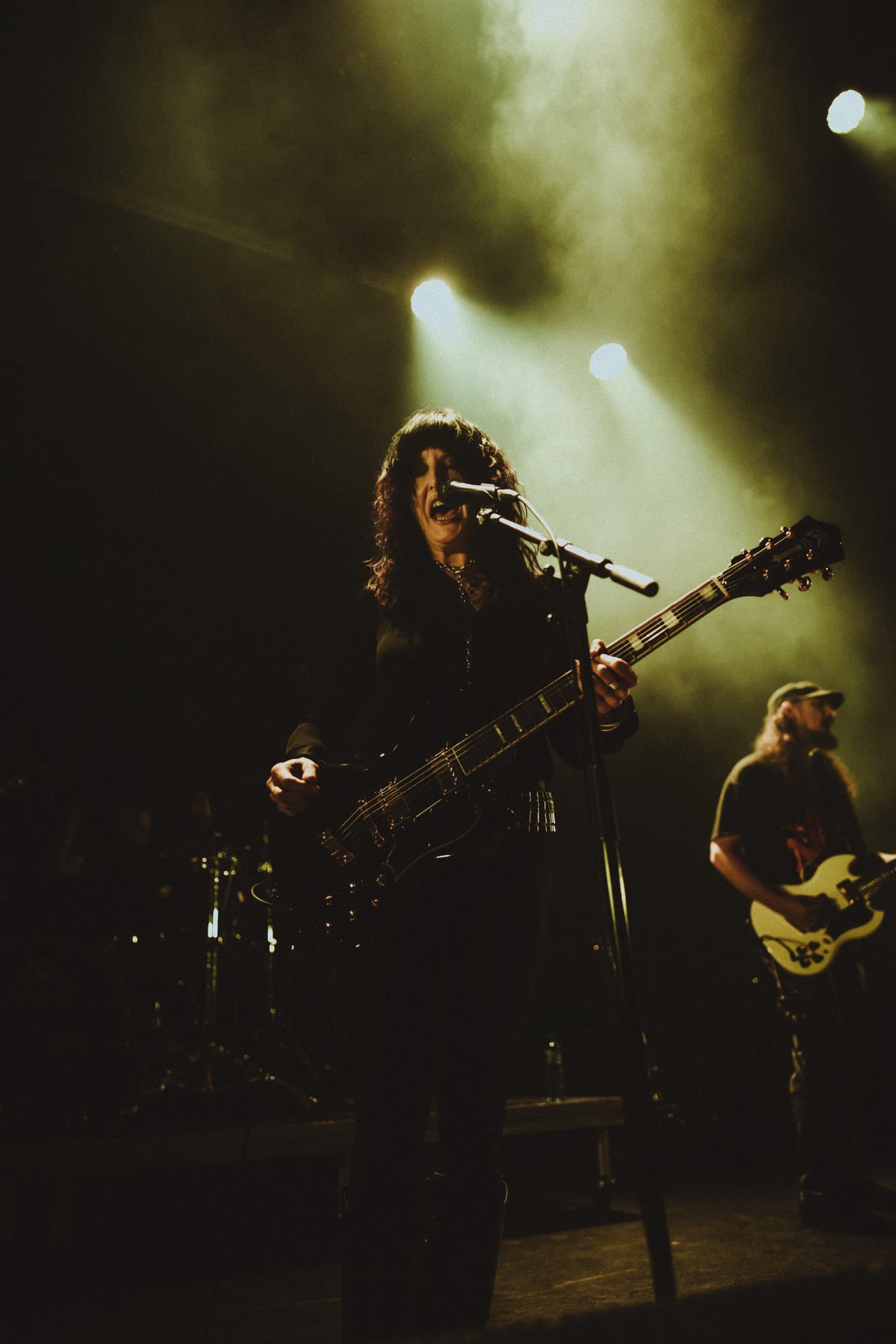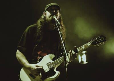 Vissza a nagyszínpadhoz: a Kylesa hangolt épp, nagy függönyök takarták a zenészeket. Onnan hallottam, hogy backline vagy gitár problémájuk adódott, legalábbis a kiszűrődő diskurációk alapján volt valami gebasz. Ez az apró malőr egy 10 perces csúszást eredményezett, majd nagy duzzgova végül belekezdtek. A feszültség tapitható volt a levegőben, igaz az előadásmódon ez nem látszódott meg. A bajt később (3-4 számon át) tovább tetézte, hogy nem volt elég fény a deszkákon, épp hogy csak piros-zöld-kékkel meg voltak világítva a zenészek. Dobosuk, Roy Maygora (igen, az a csávó) szín ideg volt, hogy nem lát, majd lőn világosság és kisimultak azok a ráncok… Beindult a sludge monstrum. Laura Pleasants gitáros / énekesnőn egyszerűen nem fog az idő, remekül állt neki a sötét haj meg a feszes bőrszerkó. A Kylesa a régi sludge-doom idők öreg motorosa, pedig nekem az utolsó infóm az volt, hogy földbeálltak. Most pedig újra nyomják – mint az Acid Bath. Láttam őket 15 évvel ezelőtt a Brutal Assault fesztiválon, akkor a két dobossal kiálló korszakukat élték. Most sima kvartettben álltak ki, masszív kis koncertet adtak, de valahogy náluk most kilógott az a bizonyos lóláb.