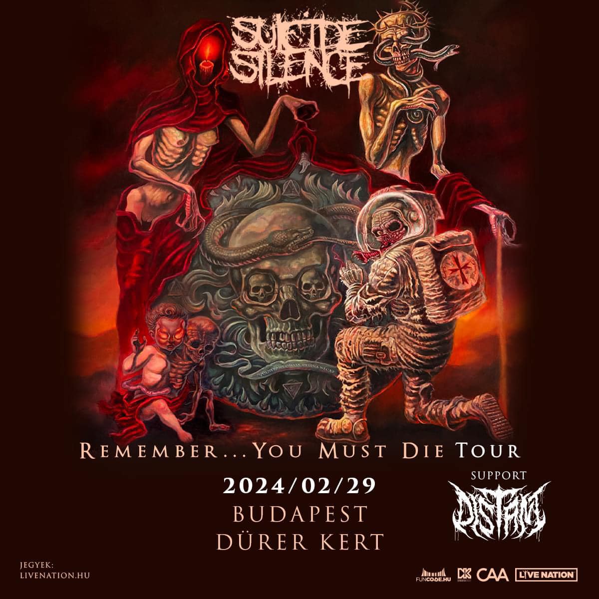 A szemfülesek már észrevehették korábban is, hogy február utolsó utáni napján a közönségkedvenc Distant fog bemelegíteni az legendás Suicide Silence-nek. Nagy öröm ez számunkra, hiszen a Distant már-már hazatérő vendék nálunk, és irgalmatlan bulikat szoktak csapni. Legutóbb a novemberi Lorna Shore előzenekarként lehetett elcsípni őket, ahol könyörtelen döngölést produkáltak a fiatalemberek. Nemutolsó sorban az aktuális, Heritage című lemezük igen nagy sikert aratott szerkesztőségünk köreiben is az évvégi szemlében. Nagyon hálásak vagyunk a budapesti szervezőknek, hogy az utóbbi időben felpörgették a deathcore közösséget és ennyi jó koncerttel látnak el minket.