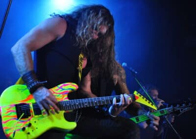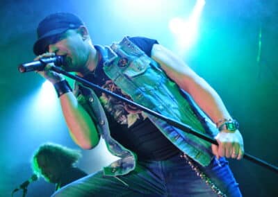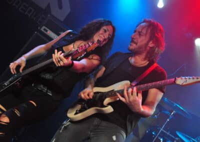 Kellemes meglepetés volt, hogy látszólag minden olajozottan, és gyorsan történt az este folyamán, így a matinét a Vice folytatta, ám a kiírt kezdés előtt már majdnem 10 perccel a húrok közé csaptak, jóval erősebb, metalosabb produkcióval emelve az este színvonalát. Bevallom, mind idáig ők is az ismeretlen kategória részesei voltak, de csak egészen idáig, ráadásul igen megnyerő, velős produkciót kaptunk tőlük 11 szám keretén belül. A müncheni srácok minden tőlük telhetőt megtettek, be is vetették magukat, elemi erővel robbantak be a színpadra, és egészen a 11. szám végéig fokozták a kedélyeket. Leginkább a frontember volt a húzóerő, ide oda rohangált a gitárosok közt, és jól kommunikált, valamint vonzotta be a buliba az első sorokban álló egyéneket, némi jó humorral is megspékelve a számok közti átvezetést. Mind riffek, mind énektémák tekintetében egy sokkal inkább összeszokottabb, kitaposottabb, pláne sokkal metalosabb csapatnak tűnnek, akik egyébként a késői nyolcvanas évek világát öltöztetik újabb köntösbe, teszik a kor embere számára is valamivel emészthetőbbé, korszerűvé. A hangszerek remekül dörögtek (én a basszus oldalán álltam, ami szintén szép mélyen, egyenletesen bőgött), a szólógitáros pedig hatalmas beleéléssel, és annál kerekebb témákat vonultatott fel sorban. Egyértelmű, hogy a két előzenekar közül abszolút ők voltak az ütőképesebbek, a közönséget is sokkal jobban megszólították, és csak úgy áradt a színpadról a pozitív energia. Őket szeretném még látni a jövőben önállóan is, várom a jövőt velük kapcsolatosan…