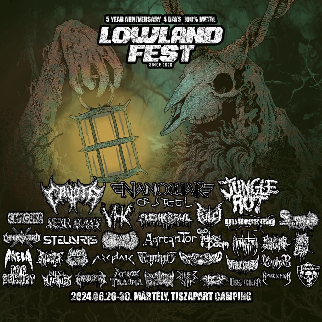Idén is lesz LOWLAND FEST, de a megszokottól eltérő helyen: Hódmezővásárhely külterületi füves-pusztás részének immár búcsút inthetünk, az új helyszín Mártély lesz, azon belül pedig a csodálatos Tiszapart camping. Egyben különleges mérföldkőhöz is érünk a fesztivál életében: 2024-ben lesz az ötödik alkalom, hogy megrendezésre kerül a rendezvény, mely abszolút hiánypótlónak számít ebben a régióban. 4 teljes napon (06.26. – 30.) keresztül fog tartani a metalbanzáj az Alföld végtelen rónáin, az őrületes hangulat garantált! A szervezők most is kitettek magukért, hogy mi igazán jól érezhessük magunkat, sikerült olyan lineupot összehozniuk, amely egyfajta szolid keresztmetszetét adja az előző LOWLAND buliknak.