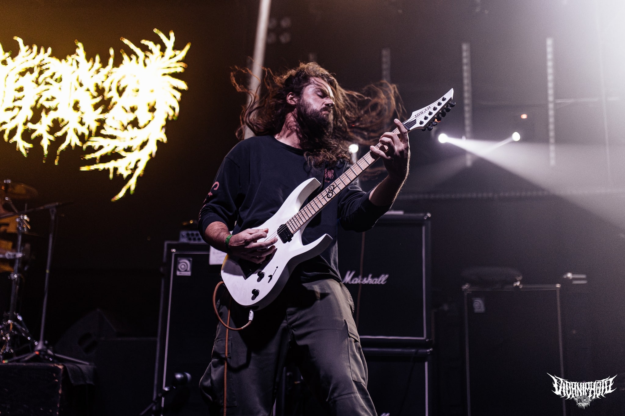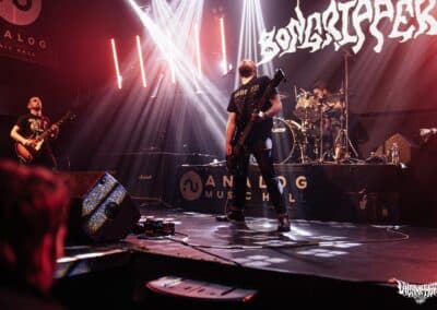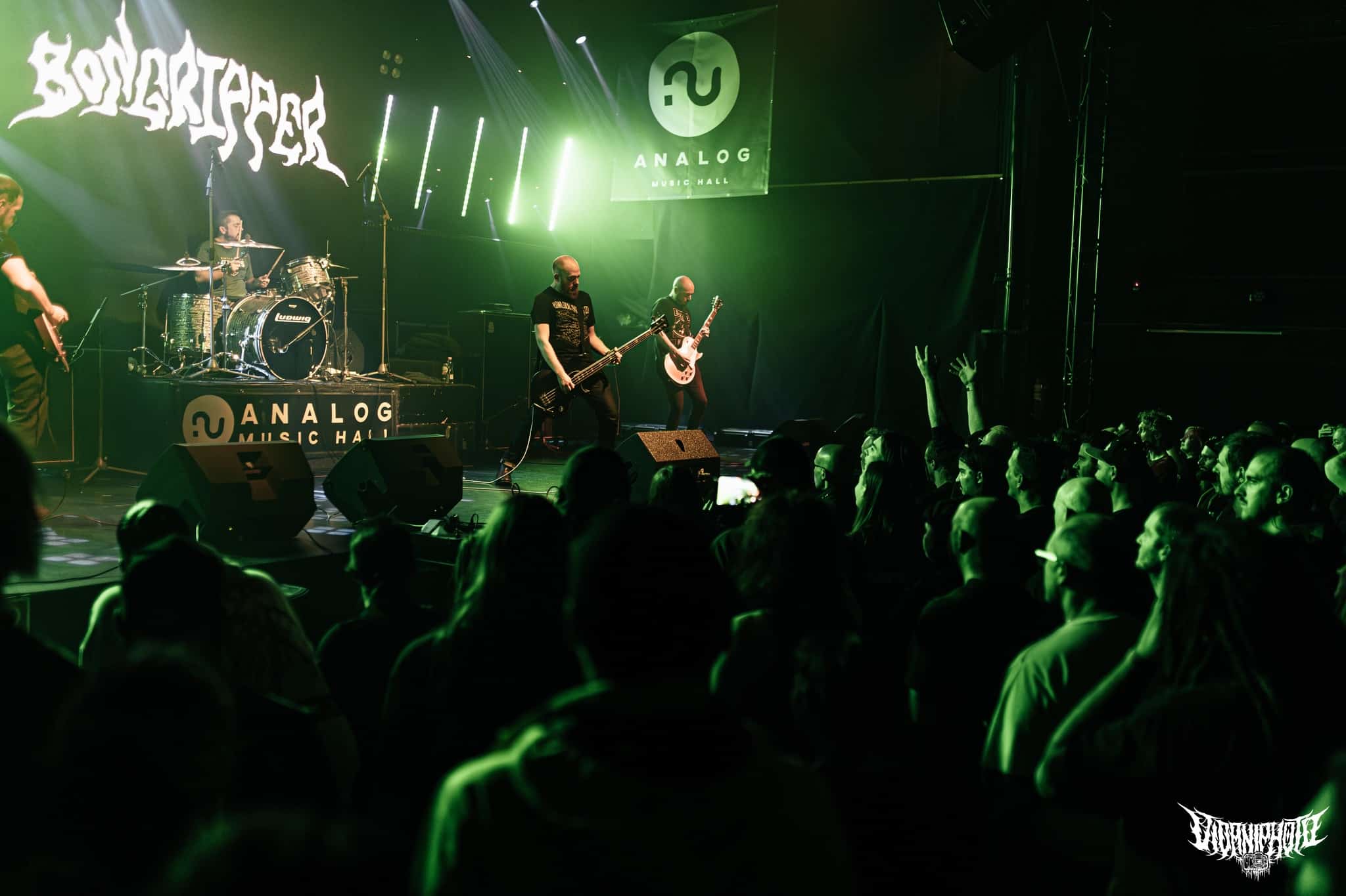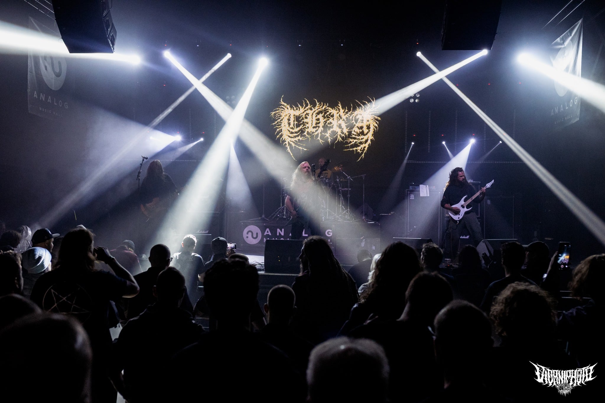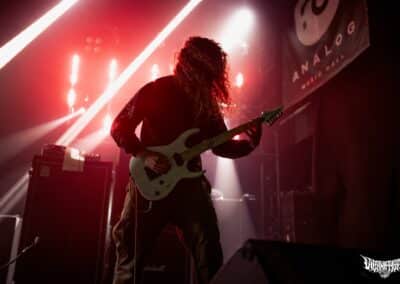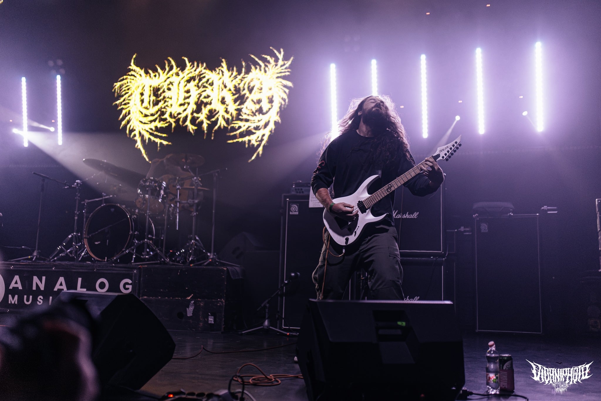 A szintén amerikai, vagyis arizóniai sludge death sulykolás, a számomra eddig full ismeretlen Thra nyitotta a sort. Vehemens, bombasztikusan őrlő erővel robbantak be a színpadra, mely elégedett mosolyra húzta a számat és késztette finom bólogatásra a nyakamat. Brutális kétlábgépek és kétféle hörgés, zs-re hangolt gitárok. Szimpatikus úriemberek a színpadon – nálam működött a Thra zsigeri – inkább death metalra hajazó sludge elemekkel sűrűn átszőtt – zenéje. Meglepően remek és erőteljes hangkép fogadott az Analogban, és bevallom őszintén, előtte féltem, hogy milyen lesz az overall sound. Az Archspire koncertjén jártam itt utoljára – nem most volt – és eredetileg az Instant-Fogas komplexumában lett volna ez a buli, mely átkerült aztán ide. A Dürer Kertbe sokkal inkább el tudtam volna ezt képzelni, de ne legyen panasz: minden kételyem már a Thra szettje alatt elszállt.
