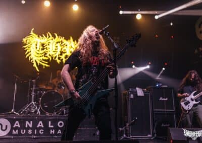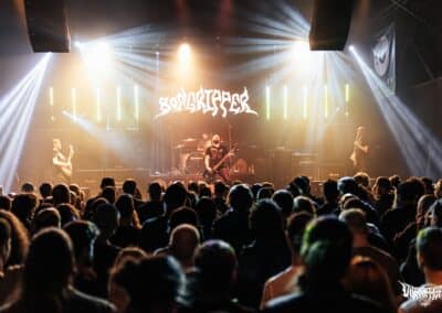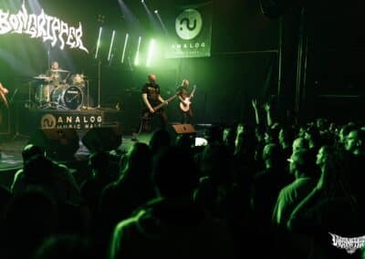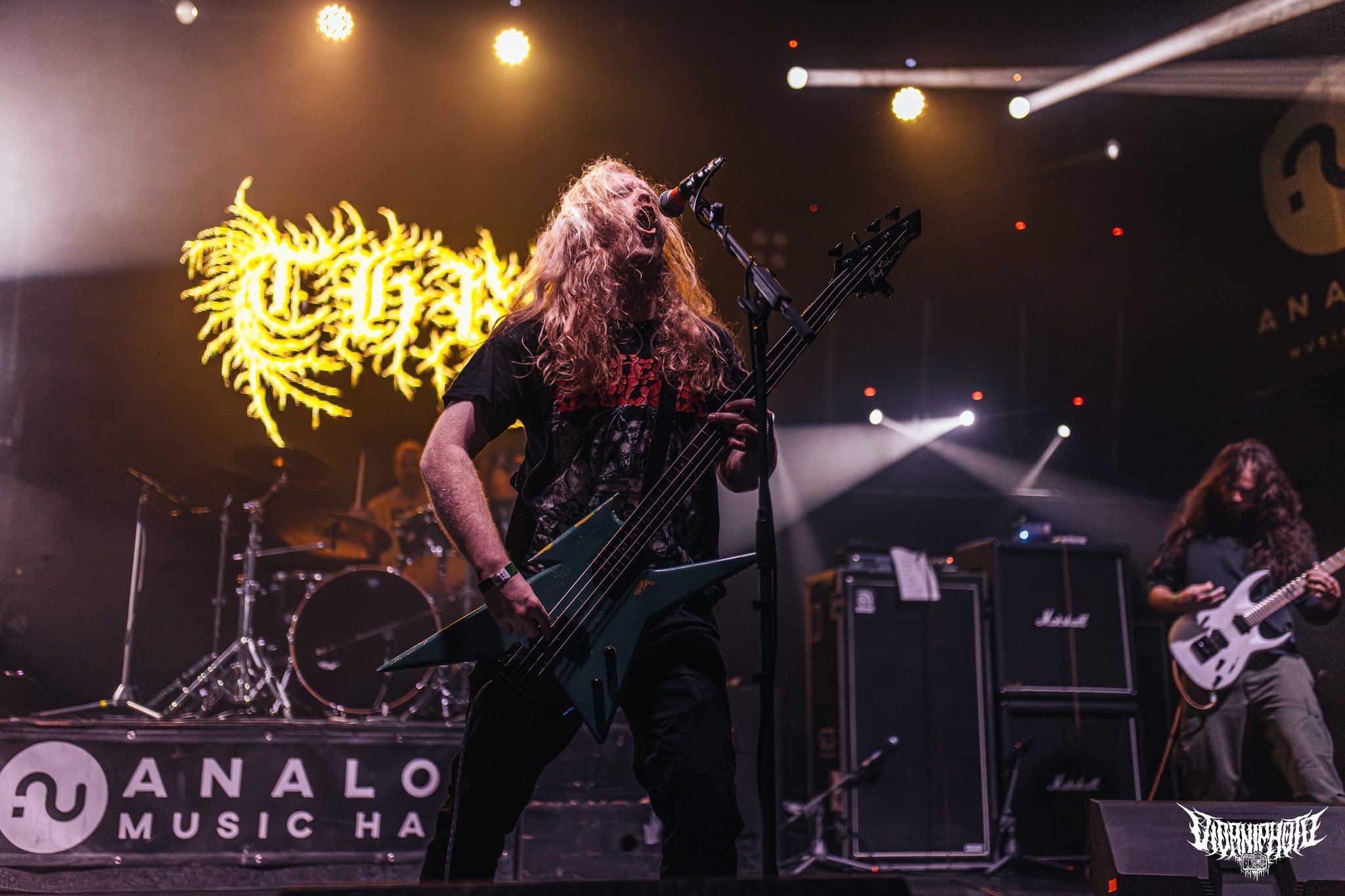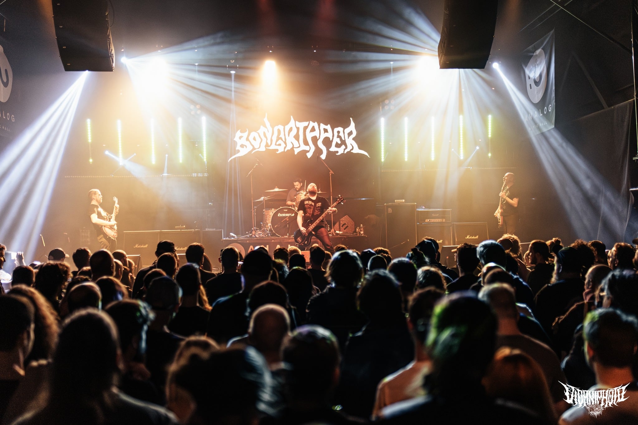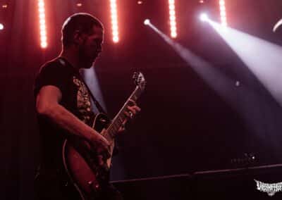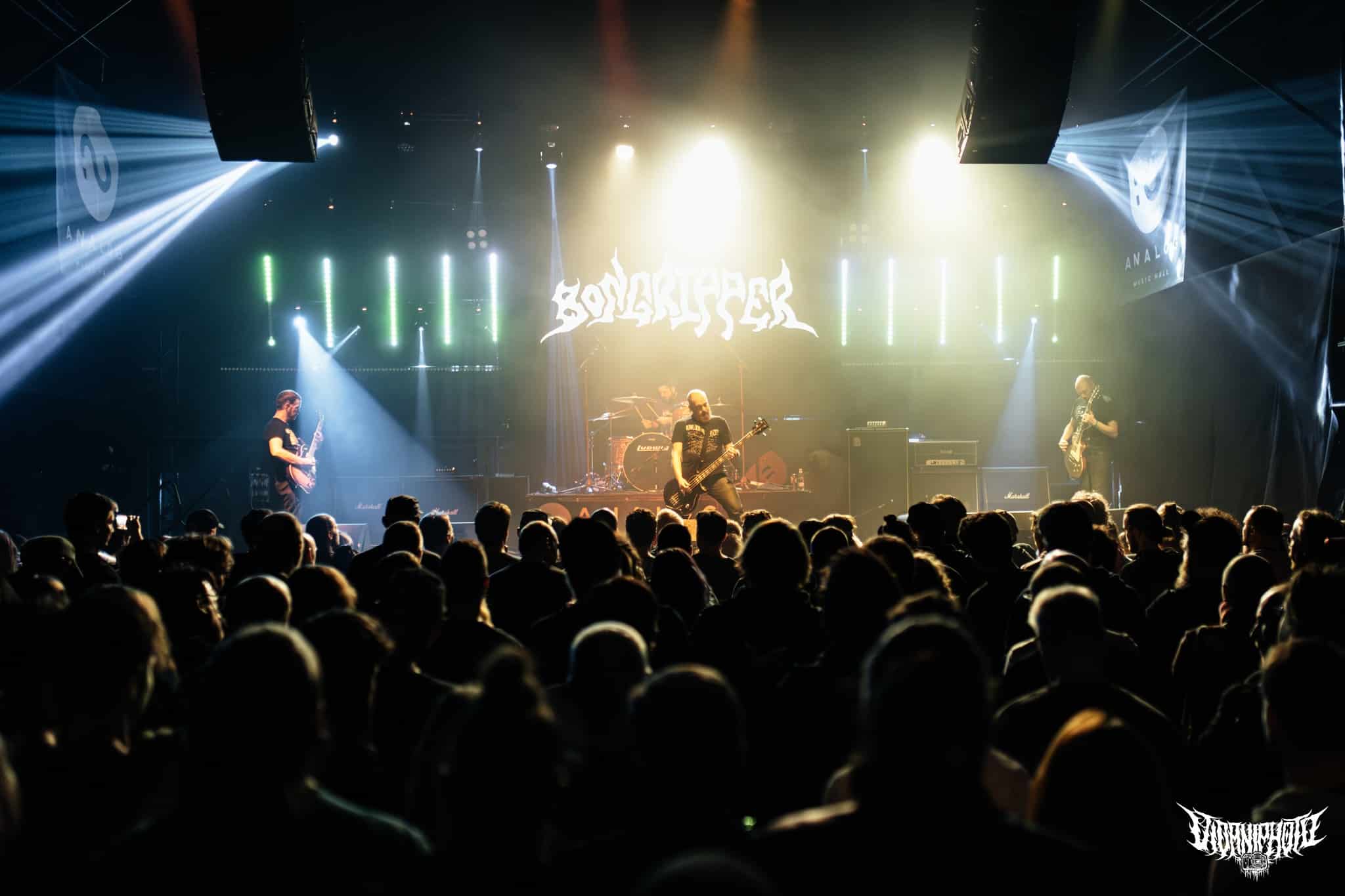 A szintén amerikai, vagyis arizóniai sludge death sulykolás, a számomra eddig full ismeretlen Thra nyitotta a sort. Vehemens, bombasztikusan őrlő erővel robbantak be a színpadra, mely elégedett mosolyra húzta a számat és késztette finom bólogatásra a nyakamat. Brutális kétlábgépek és kétféle hörgés, zs-re hangolt gitárok. Szimpatikus úriemberek a színpadon – nálam működött a Thra zsigeri – inkább death metalra hajazó sludge elemekkel sűrűn átszőtt – zenéje. Meglepően remek és erőteljes hangkép fogadott az Analogban, és bevallom őszintén, előtte féltem, hogy milyen lesz az overall sound. Az Archspire koncertjén jártam itt utoljára – nem most volt – és eredetileg az Instant-Fogas komplexumában lett volna ez a buli, mely átkerült aztán ide. A Dürer Kertbe sokkal inkább el tudtam volna ezt képzelni, de ne legyen panasz: minden kételyem már a Thra szettje alatt elszállt.