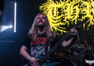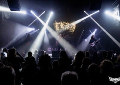 Az amcsi kvartett hasonló területen mozgott mint a coloradói Primitive Man, de dőreség lenne ezt ennyivel elintézni, hogy oké “lassúnak lassú, ismerős a tónus, majdnem úgy hörög de mégsem, nihilista perspektívák, kilátástalanság” mert azért a Thra bőven a duplázós – középtempós / lassú death metal felől közelíti meg ezt a mostoha műfajt, a számok sem annyira brutálisan hosszúak, ráadásul náluk ketten is gitároztak és énekeltek. (Az Inter Arma-t hoznám fel, mint rokonlelkek.) Zeneileg nem volt túlbonyolítva a Thra, néhol nekem kicsit összefolyt a gitárosok riffelése, ugyanis a lápi béka segge alá voltak lehangolva, de mégsem lógott ki az összképből ez a kisebb kaotikusság. Illet bele. Nem tudok számokat mondani, a hármas track meg az utolsó amit megjegyeztem, azok állat módon földbe-döngöltek, akadt valami technikai probléma is (az egyik gityósnál) meg az oldal-tam elkezdett a rezonanciától elmászni, de ez nem szegte a kedvüket, remek nyitányt kaptunk az arizónai fenegyerekektől.