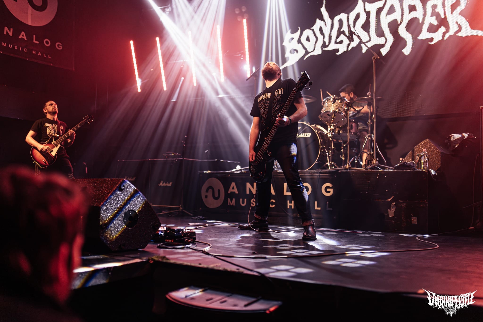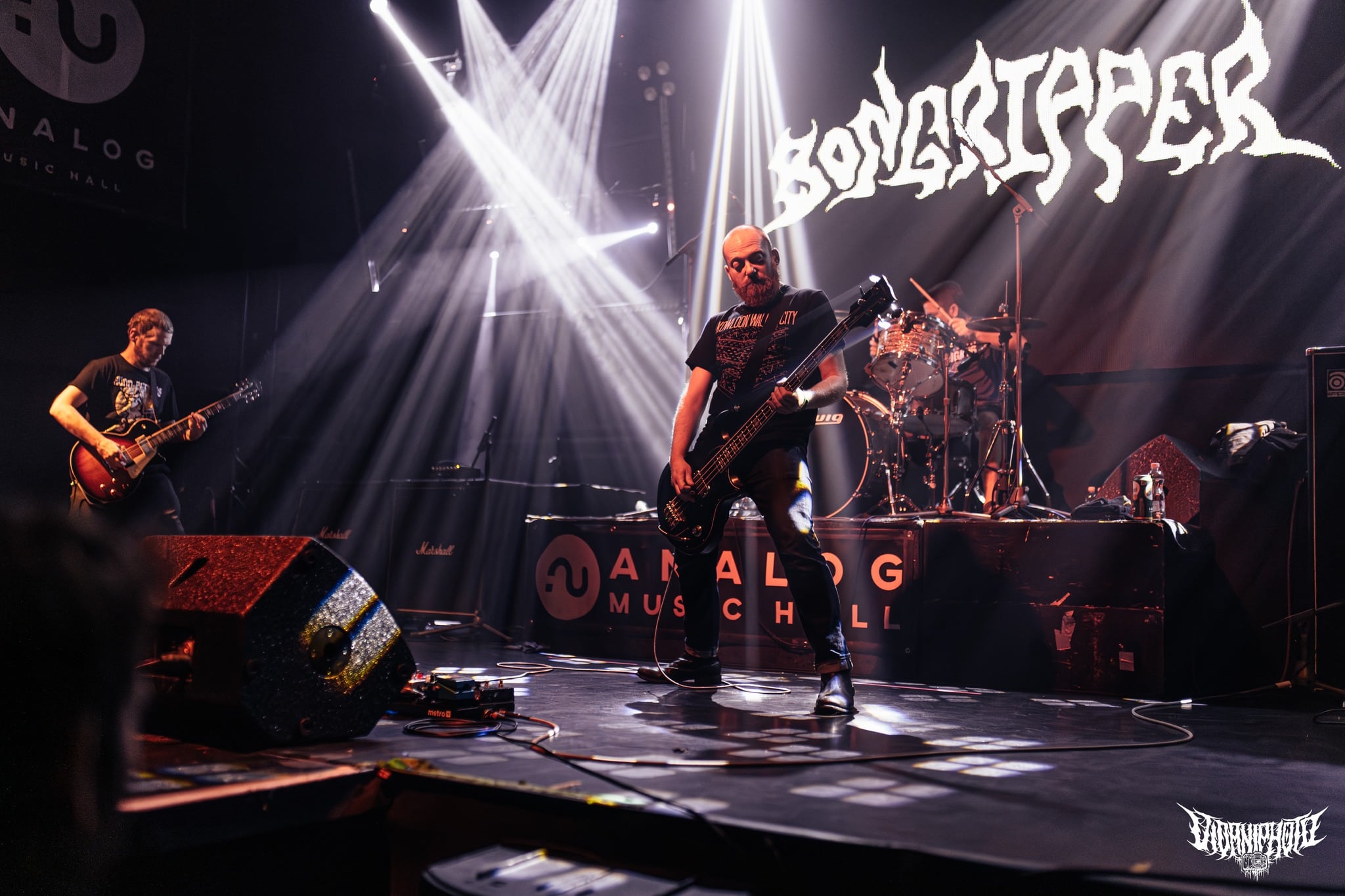 Szóval most jön a Bongripper. Mielőtt belevágnék, még egy történet ugrott be: sosem néztem kik a tagok, vagy hogy hívják őket. Valahogy sosem voltam erre kíváncsi – no nem bunkóságból – hanem pusztán csak és kizárólag a zenéjükkel voltam elfoglalva, ami annyira magával ragadott mindig, hogy sosem kerestem “kik állnak mögötte”. Ez most sincs nagyon másképp, ami azt jelenti, hogyha szembe jönnének velem az utcán, tuti, hogy nem ismerném fel őket. A lényeg: koncert előtt gyors bevásároltam, Empty vinyl a hónom alatt, meg egy Bongripper pólóval gazdagodtam, meg is köszöntem a merch árus srácnak, hogy mennyire király cuccok. Húúú meg hááá. Én fasz még akkor sem ismertem fel, hogy a merch-árus az a Bongripper egyik gitárosa, név szerint, Dennis Pleckham (!) és még eszemben is volt, hogy megkérdezzem, nem-e tudja hol vannak a tagok mert szeretném aláíratni az LP-t… Persze ez elmaradt, mert egy lusta-kutya vagyok, meg hajlamos vagyok a halogatásra… Mindenesetre a tanulságot levontam. End of story – vissza a koncerthez.