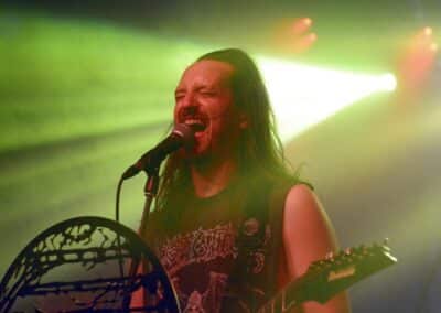 Az atmoszférikus, kicsit sludge-os beütésű post black metal zenekarok fellépései kívülről nagyon szórakoztatóak: áll tetszőleges darabszámú zenész a színpadon, akik folyamatosan játszanak, miközben a velük szemben álló hallgatóság döntő többsége mozdulatlanul, becsukott szemmel, felemelt fejjel élvezi az agyát átmosó zenét. Teljesen menetrendszerinti, hogy fellépésen nem csak előre, hanem hátra is nézegetek – az egész termet jól láthatóan megtöltötték a becsukott szemmel révedező hallgatók, akiket a Downfall of Gaia muzsikája ragadott magával. Én általában a gitárra és a gitárosokra figyelek – a Downfall of Gaia esetén viszont Michael Kadnar dobos volt az, aki lekötötte a figyelmemet. A műfajban méltán elismert amerikai fiú valami hihetetlen energiával és lendülettel dobolt, és tulajdonképpen nyugodtan mondhatjuk azt, hogy ő tartotta egyben az egész zenét. Nagyjából egy óra jutott rájuk, megköszönték a hallgatóság figyelmét, levonultak, majd pár perc múlva vissza, és megkezdődhetett az albumborító-aláíratós – kézfogós szekció.