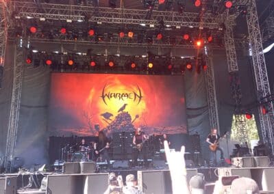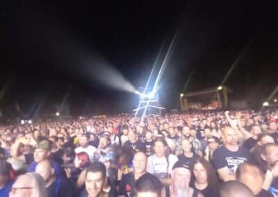 Nos, elröppent a szomorúság ideje gyorsan és még a Soulfly végéből hallottam pár artikulátlan obégatást. Nem vagyok igazán képben velük, a Seput is elengedtem a Roots után, ebbe a majomparádéba pedig bele se kezdtem, de azért vágom merre tart az öreg Max. Állítólag most egészen jó formában van és itt is odakureltak a népeknek, de eddigre én már felcsatoltam a falábat, kampókezet és a szemkötőt. Irány Tortuga büdös banda! Áhh, de szeretem a Running Wild-ot. Az első kedvenc bandám volt pöcsös koromban még az iskolarádióba is beraktuk napköziben. Az Under Jolly Roger magnetofonkazit még úgy kaptam kölcsön, hogy a rádióból volt felvéve az elején a magyar kommentárokkal eképpen: -Most az NSZK-ból a Running Wild lemeze következik, a számok: Under Jolly Roger – Csoli Rádzsőr fogságában, Raw Ride – Zord utazás, War in the Gutter – Háború a nyomortanyán, Raise Your Fist – Szorítsd ökölbe kezed…ésatöbbi…beszarsz! Életem első külföldi koncertje lett volna ’91-ben, de elmaradt és 2017-ben láttam csak őket előszőr a cseheknél a kibaszott cool Masters of Rock fesztiválon. Van egy csomó RW sztorim, de lehet nem kéne ezt itt szakdolgozat hosszban tárgyalni. Amúgy már kinéztük az augusztusi cseh dátumot, de mennyire király, hogy magyar földön nézhettük meg az öreg kalózokat. A setlistet nyilván ismertem már és mit mondjak nem voltam odáig, szegény feleségemet le is beszéltem a koncertről. Ilyen életműből a legszarabb lemezükről két tré számot is berakni…faszom Rolf, ne menj kendő nélkül a fedélzetre basszalak meg! De menjünk sorba. Eret vágok attól, hogy egy Kiss nóta az intró, jah meg hozzá még három saját intró mintha soha nem akarna kezdődni a portya. Erre pazarolni az értékes színpadi időt, ejnye. Aztán a színpadra rebbentek a Fistful of Dynamite-al amitől 2017-ben orgazmusom lett, most csak egy gyenge erekciót tudtam produkálni, ami a másodikként érkező Piece of the Action le is lohasztott, de mindegy mert tudtam, hogy utána kemény felszopás jön a Bad to the Bone képében. Na, itt keveredett elő Hawer is és önfeledten onanizáltuk végig a Death or Glory legnagyobb slágerét. Erre jött a még faszább Riding The Storm ami a program leggyorsabb nótája volt. Hát igen az öreg Kasparek már nem igazán bírja szuflával a speed tételeket. Amúgy kibaszott jól énekelt az öreg, habár néha lekéste a verzék elejét és a refréneket is rábízta a nagyérdeműre. Yo ho, meg bezavarták az öreget a rovarok éneklés közben, amiket nem égetett szét a piró. Tibike haverom meg is jegyezte az okosságot, hogy: ezek kalózók…az óceán közepén nincsenek szúnyogok baszdmeg ezért nem bírják őket. És tényleg, haha. Na ezek után jött a „kedvencem” a Lockomotive ettől már 2017-ben is szét mentem, hogy milyen topa egy fos nóta, totál érthetetlen, hogy miért nem a Mordor van helyette monnyuk. Viszont innen már nem volt hiba, maximum annyi, hogy a Port Royal-ról nem volt semmi. Felháborító. Mindegy, a Soulless kárpótólt a Black Hand Inn-ről. A végén nyilván az Under Jolly Roger-el búcsúztak, de még visszajöttek az össznépi vigadalom után és elnyomták a Treasure Island-ot. Tökre menő, hogy bevállalnak egy ilyen hosszú számot, de igazából nem ütött nagyot a végén, tudtam volna helyette javasolni néhány másik tételt, de ne legyünk szőrszálhasogatóak. A banda amúgy top formában volt, faszán nyomtak mindent, a hangzás szuper volt a jelmezek és a vetítés is okés volt kivéve Rolf gatyáján a farzsebeket. A kalózoknak NINCS FARZSEBE! Talán a közönség volt kissé „sajt” ha jobban átélik a bulit az egész még élvezetesebb lehetett volna. Még volt hátra egy Pro-Pain és egy Pokolgép koncert, de eddigre már a végét jártam, húztam aludni. És egy bölcsesség a végére: ne vegyetek be vízhajtót este 8 után. Ötször keltem fel húggyozni, emiatt semmit nem tudtam aludni, amit a hajnali háromig üvöltő rockdiszkónak is köszönök.