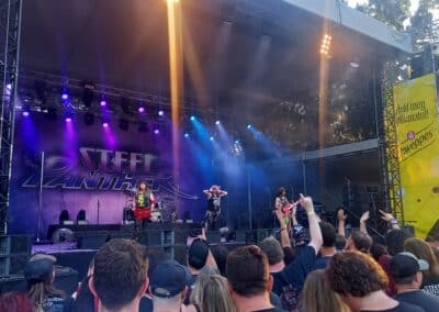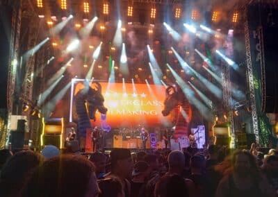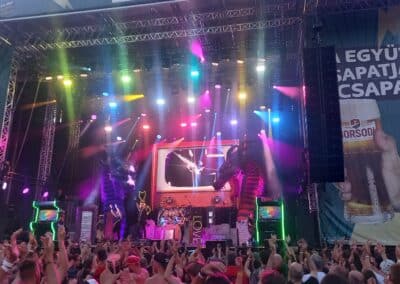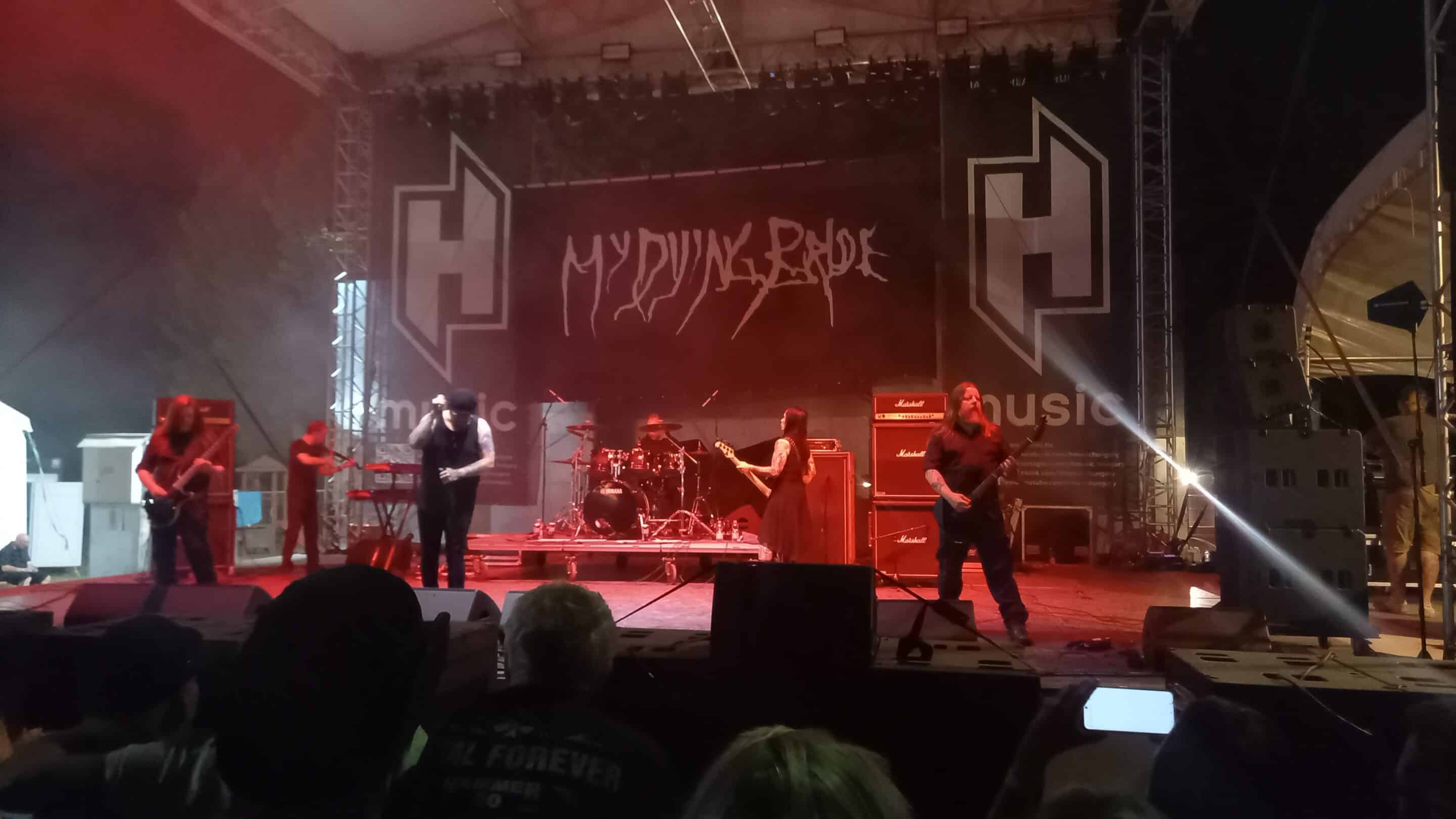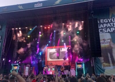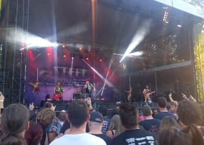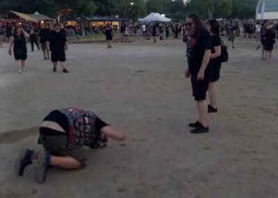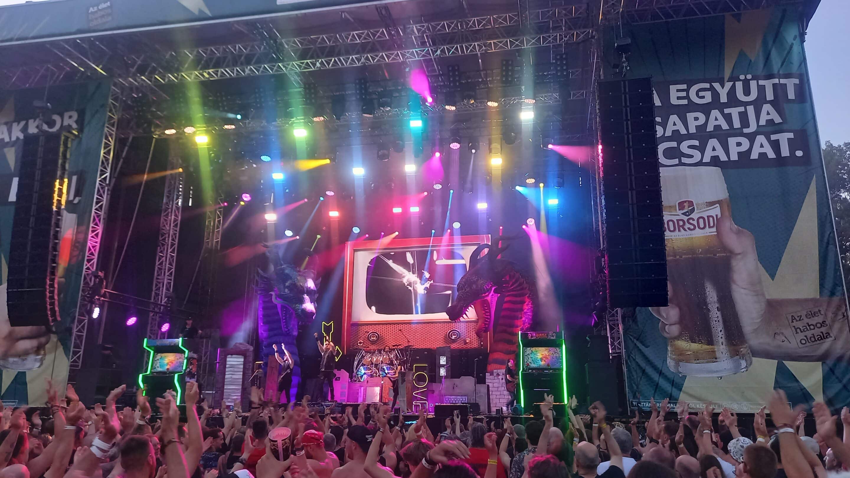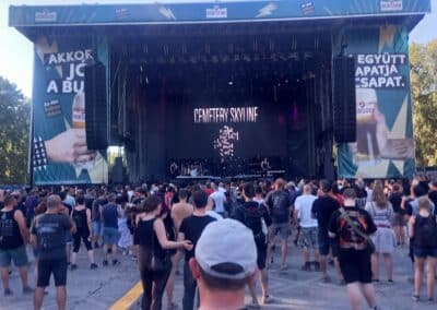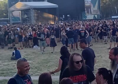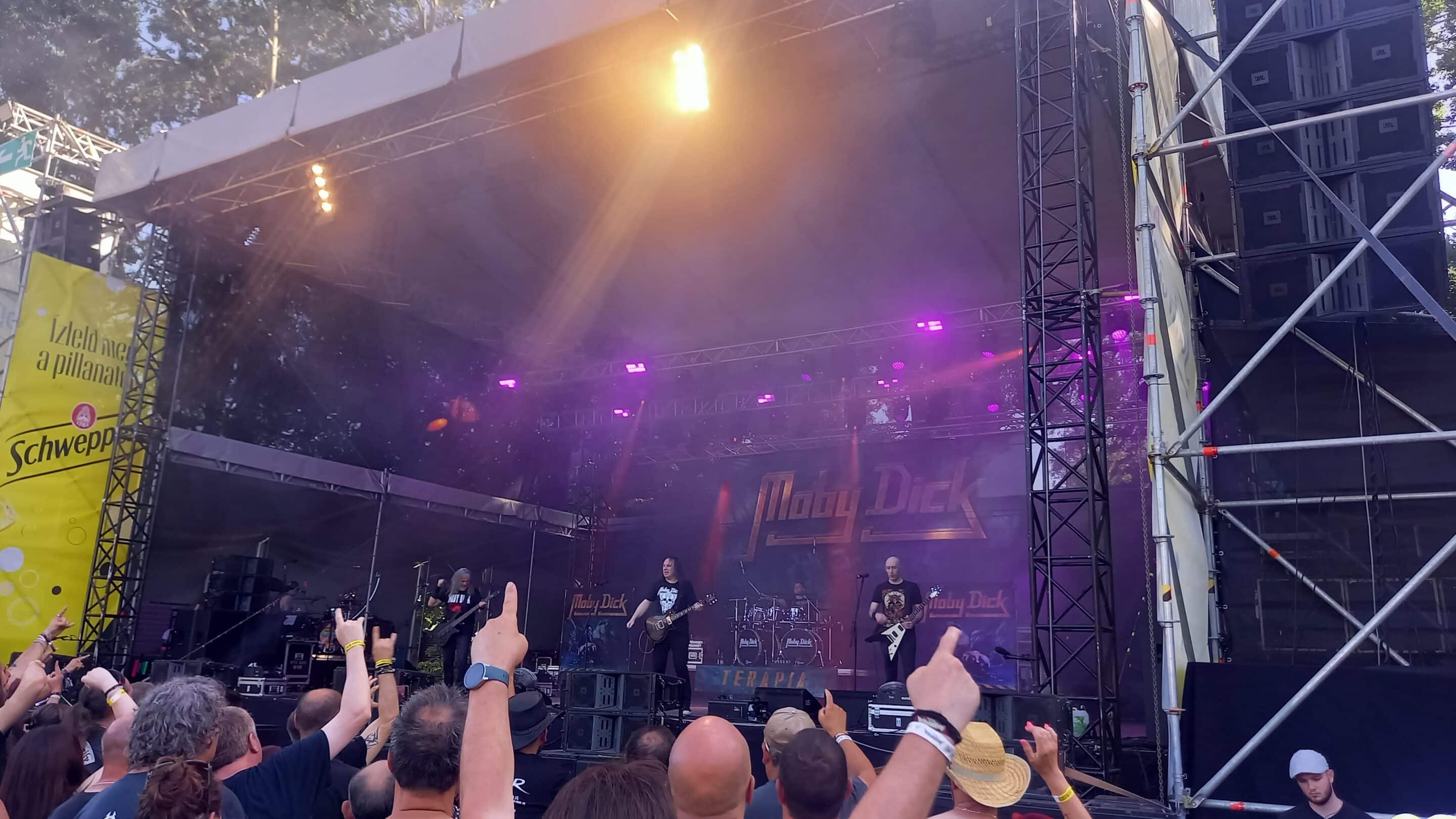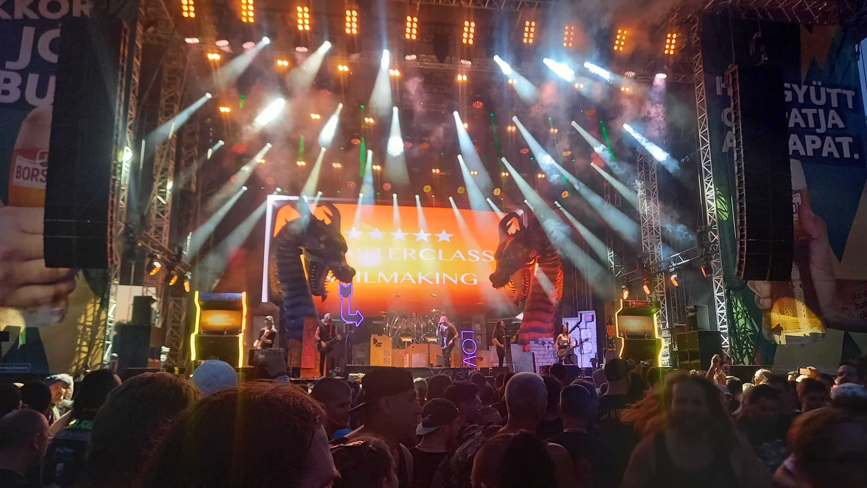 Koncertek: a tűző napon a H-Music sátornál belenéztünk néhány magyar produktumba a kánikulában aszalódva. Hát rosszat egyikre se tudok vagy akarok mondani, de abszolút nem ez én zenéim voltak. Ilyeneket láttam pár szám erejéig: Phrenia, Roses Of Thieves, Dying Wish, Wall Of Sleep, de mivel a nagyobb színpadokon is beindult az ipar, jó pár bandát kihagytam. Ami kissé fura volt, hogy olyan 16 óráig alig volt ember a fesztiválon, de nyilván a kánikula se kedvezett az ügymenetnek. Az első nagyobb produktum a Warmen volt a legnagyobb sztédzsen. Hawer nagy Children of Bodom rajongó ezért erre rá is izgultunk, mert a Bodomos billentyűs csávesz szoló bandája ez eléggé a Bodomra hajazó zenei megoldásokkal, de akkor a mondat végén is legyen: Bodom. Azon kívül, hogy profi volt illetve volt két Bodom nóta is a programban nekem olyan mindegy volt, hogy mire sörözök délután fél ötkor és a nap is odabaszott még ekkor. Egynek jó volt. Aztán jött a Moby Dick…huhh erről aztán tudnék hosszan írni. Utoljára a ’19-es maratonon láttam őket és nagyon nem jött át az akkori produkció, pedig a kilencvenes évek elején nagyon éltem a fehér bálnát, de szerintem rosszul öregedett. Mindegy akármi alapon belenéztem az elejébe és meglepően jól szórakoztam rajta, mert szinte csak az első négy lemezről jöttek a nóták ezért a nyolcadik számig kitartottam, de inkább léptem inni nehogy beüssön egy az Okosvilághoz meg a Vulkános akármihez hasonló újabb borzalom. Szóval kellemes meglepetés volt a soproniak bulija. Itt volt valami anomália, mert mintha kiesett volna némi idő, de ki tudja már, az viszont biztos, hogy bent voltam a strandon a vízben, mert tökig vizes voltam a cipőm sehol és leettem magam mustárral, mert valahol a strandon vettem egy hot-dogot. Ahhaa megvan…. itt jött a Cemetery Skyline. Na, ez tetszett nékem, ilyen Paradise Lost / Sisters of Mercy féle akárminek tűnt, de a tagok ritka vidáman tolták szóval nem volt bánat inkább gothdisco. Még az otromba Running Wild számkövetelésemet is csak egy mosollyal nyugtázta az énekes koma. Kár hogy nem készültem belőlük, mert nagyon jó koncert volt. Ja igen…bunkó voltam mert minden koncerten bekiabáltam, hogy „tojjatok Ránnigvájdot” ez mondjuk jobb mint a funkciótlan Akelázás, de attól még topa. Illetve arra jutottam, hogy ha már ennyi magyar fellépő van, kötelezően kidanám nekik feladatnak, hogy az aznapi főbandától tanuljanak meg egy számot és adják elő. Mekkora lett volna, ha a Don Gatto előadta volna a Port Royal-t vagy a Wall of Sleep az Evil Spirit-et bazm… Ekkor meglett a Warmen közben elhagyott Hawer is és beültünk valami fotelekbe onnan hallgattuk a Steel Panthert aminek az utolsó három számára aztán be is mentem mert sok volt a csaj….a színpadon is. A zenéről nem tudok nyilatkozni, de az emberek jól szórakoztak rajta akkor már énis…. Voltak rúdtáncosok meg minden és találtam egy vörös rúzst is a küzdőtéren….átvehető a Blahán. Jah és még egy érdekesség, politika és prájd mentesen amit eddig én még nem tapasztaltam ilyen helyeken: vagy három fickó rám nyomult a nap folyamán ilyen beporzó szándékkal. Tudom, hogy csini fiú vagyok de nemár…faszán rám kacsintott az egyik meg hozzám dörgölődzött koncerten a másik meg ilyenek. Itt is nagyon ittunk valamiket aztán jött a Dragonforce. Hallottam pár lemezüket, de nem igazán fogtak meg pedig papíron nekem való is lehetne. Csiriviri Casio metal ez az ehhez tartozó csinnadrattával. Nekem beadta ez a kissé a flippermúzeumot idéző színpadkép az eszeveszetten rohangáló zenészekkel. Nem mondanám, hogy zeneileg lekötött, de a giga látvány elvitte a show-t. Aztán jött a nyomor: My Dying Bride. Kurvára szeretem, de a %-os lemez utáni dolgaik nekem összefolynak, addig azért megvan minden, felismerem a nótákat. Mivel Aaron Stainthorpe énekes nem koncertezik velük, beugró énekes van Mikko Kotamäki a Swallow the Sun-ból aki egy az egyben lehozta Aaron témáit, totál respekt a csávónak kivéve a téli sapkáját 40 fokban. Mondjuk a dobos meg kapucnis pulcsiban dobolt, barmok ezek. A szett is patent volt két szám a Like Gods-ról kettő az Angel and the Dark River-ről majdnem besírtam baszdmeg. Főleg a From Darkest Skies csapott meg valahogy, újra átéltem azt, hogy túléltem egy szívműtétet, ami harmadjára sikerült….ahh nagyon kemény percek voltak haver!!!