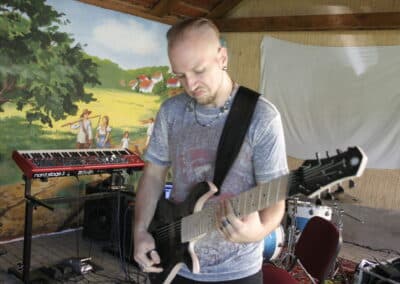 Az őket követő zenekar a Room Of The Mad Robots volt, akiknek az élőzenei profizmusát már több koncerten is volt szerencsénk megtapasztalni. A stílusukat nem könnyű behatárolni, magukat egyszerűen csak rockot játszó zenekarnak titulálják, de ha pontosabbak akarunk lenni, alternatív-progresszív-modern metal jelzőkkel is illethetjük a poliritmikus elemek és kütyük használata miatt. A látványt a színpad hátulján csücsülő gyerekek tették egészen elbűvölővé, majd a koncert vége felé szemtanúi lehettünk még egy gigantikusra nőtt molylepke megmentésének is, ami mindenkit mosolyra derített, hiszen a természet lágy ölén rendezett, családias hangulatú prog-fesztivál témájához tökéletesen kapcsolódik az állat- és természetvédelem.