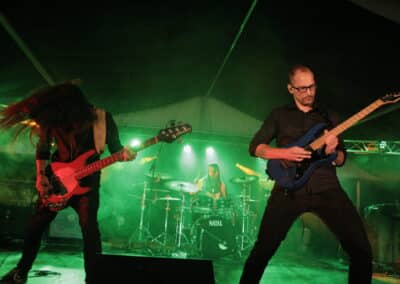 Az abaligeti Prog Camp fesztivál második napi programja is néhány csereberével indult közlekedési és egyéb okok miatt, így a pécsi post-metal Sirens Chant indította el a szombati koncertsorozatot egy elég erőteljes szettel. A főleg Deafheaven és Birds In Row ihletésű projekt egyébként az új nagylemezén dolgozik, erről hallhattunk néhány spoilert a régebbi dalok mellett – összességében a nyers és száraz hangzásukkal készítették fel a közönséget a szombati nap pár fokkal erősebb felhozatalához. Utánuk a Hatred Solution csapott bele a darálásba feszes tempókkal és nagyon meggyőző női hörgéssel. Ők a fesztivál egyetlen slamming deathcore zenekaraként álltak a színpadra, Kohulák Mónika scream-technikáitól és Fényes Roland gitáros széles spektrumú játékától mindenkinek garantáltan leszakadt az arca, nem beszélve az erős színpadi jelenlétükről. A soron következő, igazán progresszív metalt játszó Dreamgrave egy nagyon izgalmas hangulatba repítette a közönséget Csányi-Molnár Mária gyönyörű szopránjával, ami időnként az egyszerű halandó számára szinte felfoghatatlan magasságokban csengett, valamint Baranyi Kriszta hegedűjátéka tette még egyénibbé a műsort. Ez a progresszív metal alapokon nyugvó eklektikus hangorgia első körben az Opeth vonalas fanokat szolgálta ki, viszont erős hangulatképeikkel és kifogástalan játékukkal minden hallgatót elvarázsoltak. A számos zenekarban játszó Tóth (Póth) Tamás óramű pontossággal adta a talpalávaló ritmusát. Ritkán hallani ennyire összeszokott zenekart, tökéletes választás volt ismét a fesztiválra.