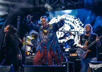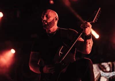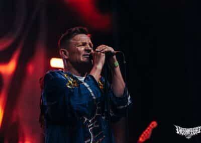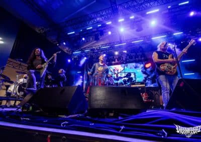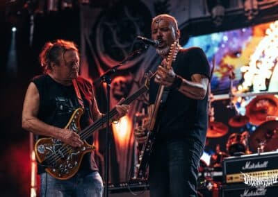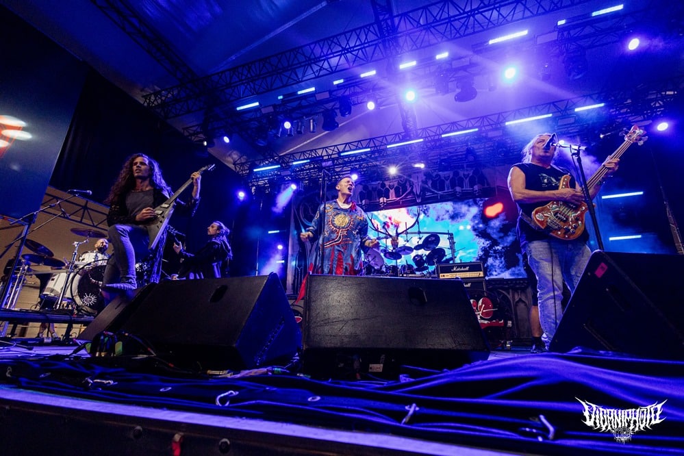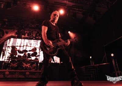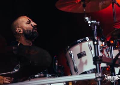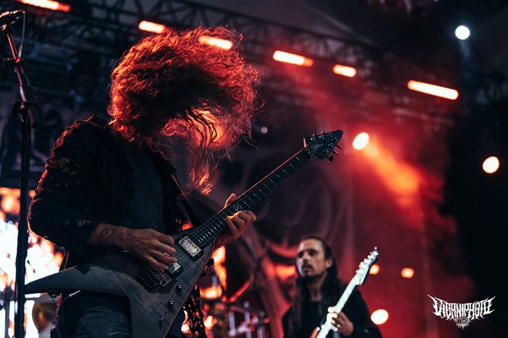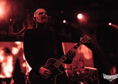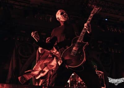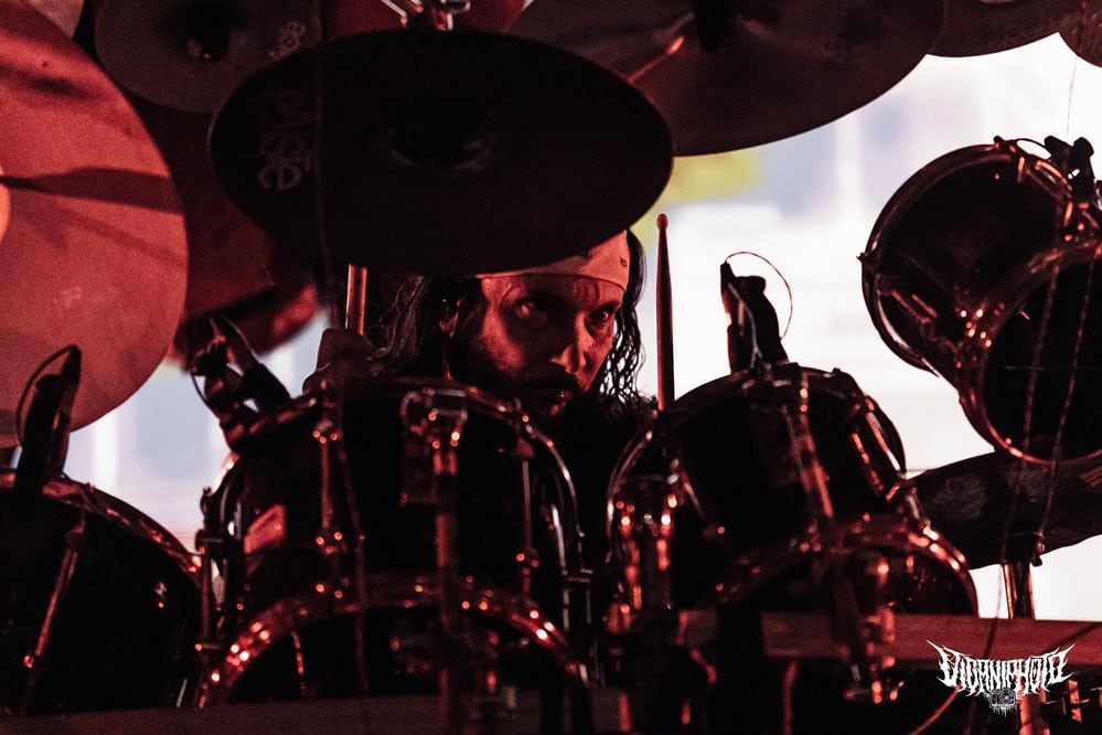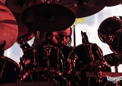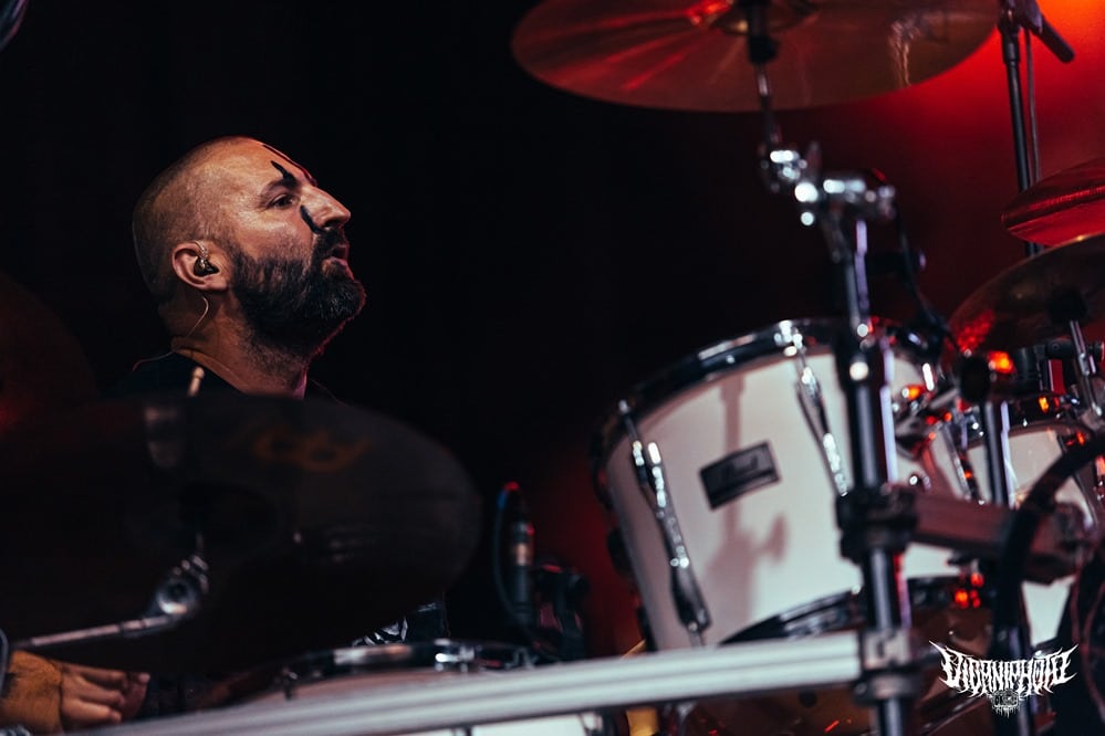 Az egész 40 éves Mayhem életmű terítékre került, rétegenként haladtunk belülre a szónikus test szövetében, befelé a végtelen Feketeség és Káosz felé. Az említésre hívatott stációkat a nagylemezek jelölték, a klimax számomra a Grand Declaration Of War LP és a Wolf’s Lair Abyss EP bizonyos dalai jelentették, melyeket kb. most hallottam élőben teljes valójában. A zenekar szinte tökéletesnek mondható hangzása is valahová erre a középmetszetre volt kalibrálva, így egyaránt ki tudott teljesedni a true old school éra és a modernebb / mai vonal is. Apropó hangzás: a Barba Negrában tartott koncertekről az utóbbi időben sok olyan beszámolót olvasni, hogy nem volt toppon a hangosítás. A Mayhem esetében ezt most abszolút cáfolom: bárhol álltam a nézőtérem, minimális eltéréssel egészen élvezhető, egy nordikus black metal bandához képest pedig szinte hibátlannak mondható hangképpel operáltak. Talán Teloch gitárja kissé a mixbe alá volt temetve, a bontásait, frazírjait nem lehetett annyira tisztán kivenni, ellenben Charles gitárja már igazi bárdként funkcionált. Necrobutcher basszusfutamai dühösen dörögtek végig kivehető módon, ezer közül is fel lehet ismerni azt a sajátos torzítást. Egyetlen negatívum ütötte meg a fülem: a számomra oly kedves Illuminate Eliminate megdermedt katarzisba nyúló zárását elmismásolták a gitárosok. Tizenegy színtérpont mínusz! Amúgy egyetlen üresjárat nem volt a műsorban, sőt orbitális hossza ellenére – 120 percről beszélek – sem tűnt unalmasnak vagy erőltetettnek. Végig odaszegezte a figyelmed és nem engedett belőle. Ahogy haladtunk visszafelé a Mayhem biográfiában, úgy ástunk egyre mélyebbre a black metal műfaj szinte már történelmi jelentőségű eseményei között. Az utolsó nagyobb lélegzetvételű blokk a De Mysteriis Dom Sathanas és a Deathcrush dalaiból állt össze, itt már teljes volt az eksztázis, nem volt visszaút. Csihar Attila láthatóan elemében volt, 666 fokos fordulatszámon pörgött, gesztikulált / delejezett és énekelt. Ördögi hangja átvágta és egyben uralta az atmoszférát. Rengeteget fejlődött az évek során, zseniálisan hozta Maniac torokmetsző vokáljait, de az operai hangtartományokban mozgó sikolyokat és elfojtott / elfúló hangokat is szinte lemezminőségben reprodukálta. Igazi frontember, sámáni őserő rejlik ereiben, hasonlóan a Grandpierre-hez. Mindketten kortalanok. Hellhammer-t is szeretném megemlíteni, ugyanis nélküle nincs Mayhem. Az évek múltával egyre brutálisabban és feszesebben dobol, itt is bizonyított, ember legyen a talpán, aki utána csinálja ezeket a blastbeateket és sűrű dobtémákat. Karakteres módon játszik, ő is már védjegy kategória, mint a Necrobutcher basszus sound, tőlük lesz igazán hiteles a csapat. Alatta szintén úgy szólalt meg a cájg, mint a lemezeken, iszonyatos / hidegrázós érzés volt a mostani éra és a DMDS klasszikusait élőben hallani. Az utolsó hajrában itt is megvoltak a régi zenész featuringek mint a bergeni koncerten, nekem viszont ennél a pontnál totális káoszba fulladt az este és súlyos audiovizuális kollázzsá változott… az utolsó kép, vagyis inkább mondat, ami megmaradt a fejemben az annyi volt, hogy: PURE… FUCKING… ARMAGEDDON !!!