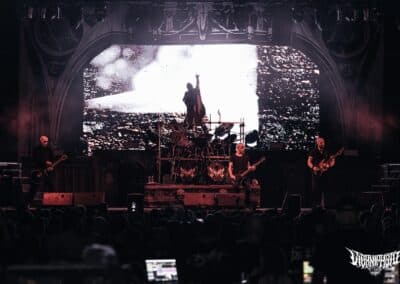 Egyik grafikusuk, Daniele Valeriani által készített impozáns oszlopokkal keretbe foglalt színpadkép fogadott: az óriási LED-fal elé a sportarénás TOOL koncerten látott és ahhoz hasonló állványt / karzatot húztak fel, melyre a rendezői baloldalon felmenve bármelyik zenész – Hellhammer dobost kivéve – eggyé tudott válni a kivetítő tartalmával. Attila nem egyszer szó szerint egybeolvadt az animációval, mely szinte sebészi precizitással váltakozott képről képre, ördögi fraktálról még ördögibb fraktálokra, emlékeket / fontos stációkat felelevenítve a zenekar unalmasnak egyáltalán nem nevezhető múltjából. Az élő zene ritmusára változott állandóan, pokoli örvény módjára a vizuál, igazi művészmunka, ritkán láttam ehhez hasonlót. Több pontnál is az volt az érzésem, hogy egy art movie-t nézek, nem is koncerten vagyok, de ez semmit nem vont le az előadás értékéből és erejéből. Sokkal inkább éreztem, ezt egy teljes / megbonthatatlan egységnek, mint sima appendixnek vagy mondjuk helykitöltő figyelem-lekötésnek / elterelésnek. A zenekart körülvevő misztikum, a démoni energiák, a megszállottság, rendkívül erős jelenlét-kivetülést eredményezett, mely az első percnél fogva magával rántotta majd húzta a hallgatót mind az összes 22 (!!!) tételen keresztül. A zenekar image is szinkronban volt ezzel a sötét black metal trippel, melyet leginkább Attila tett hangsúlyossá a különböző palástokkal / kellékekkel és ruhákkal.