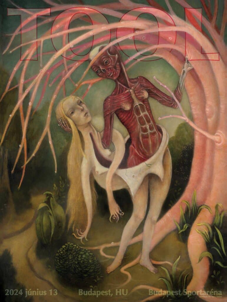 Mert amellett, hogy akkurátusan majdnem minden fontosabb momentumot felsoroltam, talán a leglényegesebb dolog elkerülte a figyelmünket. A TOOL úgy vált ez alatt a 34 év alatt a világ egyik legikonikusabb, pszichedelikus kult rockzenekarává, hogy sosem akart az lenni. Ki gondolta volna, hogy ez a Los Angeles-i négyes, egyszer stadionokat / arénákat fog megtölteni több tízezer emberrel? Nyílván ott lebeghetett vagy vibrált finoman ez a gondolat a fejükben, ki tudja… Az biztos, hogy 2024-ben újból felénk kanyarodtak az Európa turnékörútjuk alkalmával, méghozzá a szintén kaliforniai államból származó Night Verses zenekar társaságában. Micsoda grandiózus konstelláció – mondtam is magamban, ahogy megtudtam, hogy ők lesznek a kisérőpartner ezen a turnén. A TOOL mindig is remek érzékkel választotta ki a velük együtt játszó bandákat, ez alól talán csak a 2022-es EU turnétárs, a Brass Against volt kivétel (akik amellett, hogy kiváló zenészek, inkább MÁS miatt lettek ismertek) de volt már Primus, Mastodon, Meshuggah, Author & Punisher és Elder is, sorolhatnám napestig.