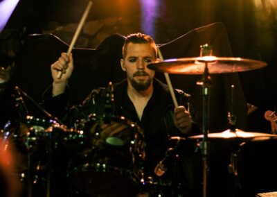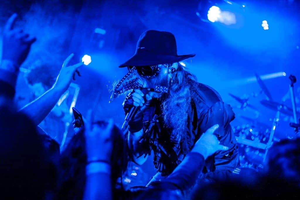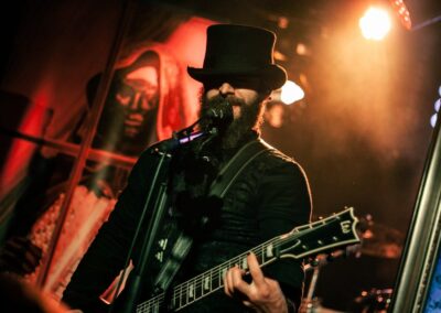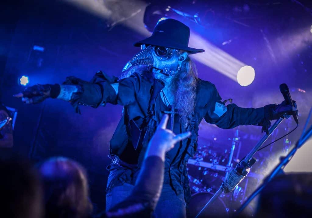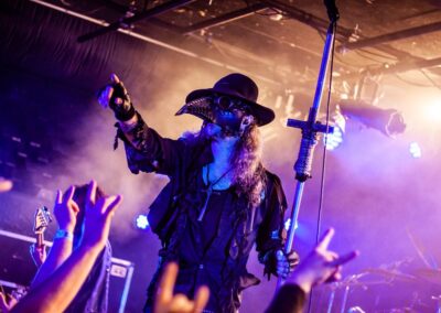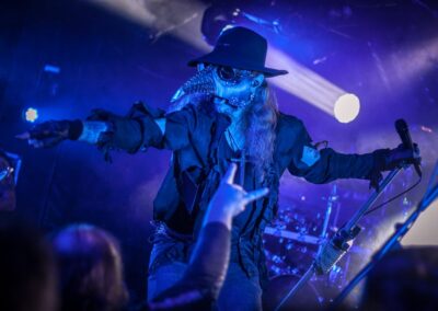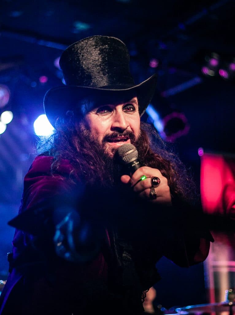Egyébként, most, hogy ezt jól kiírtam magamból, nem akarom annyira bántani őket, ugyanis egyértelműen látszik, hogy a Lord Campbell vezette srácok RENGETEG munkát beleáldoznak a bandába, és az egész nagyon ki van találva. Ismét egy kivetítővel jöttek fel a színpadra, ami/aki kommunikációban volt az énekessel, kiegészítette a showt, illusztrálta azt, sőt gyakorlatilag még részt is vett a dalokban (bár az „orgonázik a szellem és a szünetekben kiabáljon a közönség” résszel csúnyán besültek, leginkább csendben voltunk, meg volt, aki nevetett), ez szépen ki van találva, el van készítve, és tartja is az időzítést a banda, hogy minden tökéletesen menjen (mondjuk svájciak…). Emellett nem semmik a jelmezek, amikben vannak, Lord Campbellnek riszpekt, szuper smink, kontkatlencse, steampunkos öltöny, és ebben, meg sétapálcával tolja végig. Mondjuk az nagyon cringe volt, amikor gyakorlatilag nyújtogatta a botját a közönségnek, hogy tapizzák meg… Ehm… Szintén picit kellemetlen volt, amikor az utolsó dal alatt a közönséget nem egyszer, hanem KÉTSZER guggoltatták le és ugráltatták meg, nagyon túltolják, és nagyon parasztvakítás szaga van az egésznek.