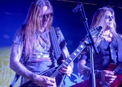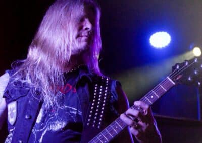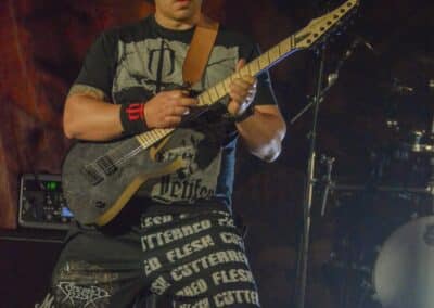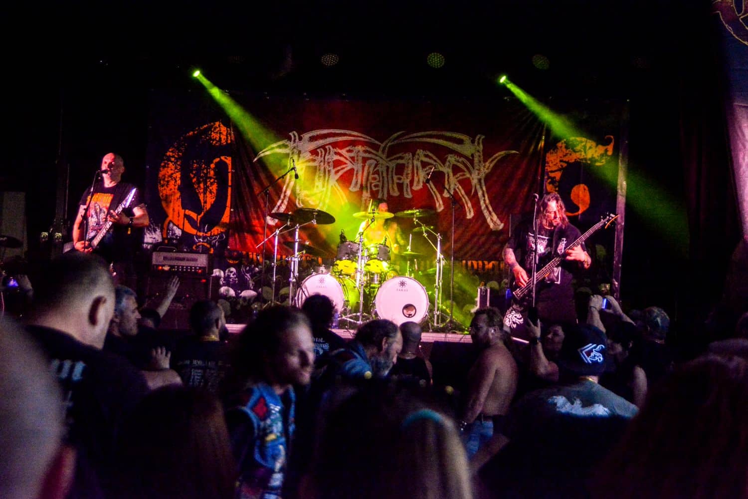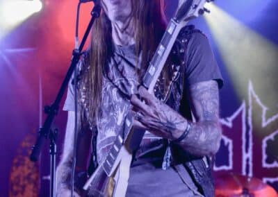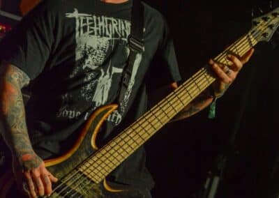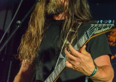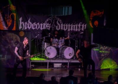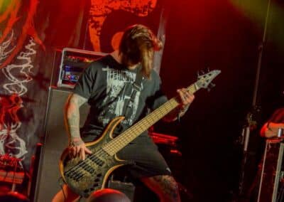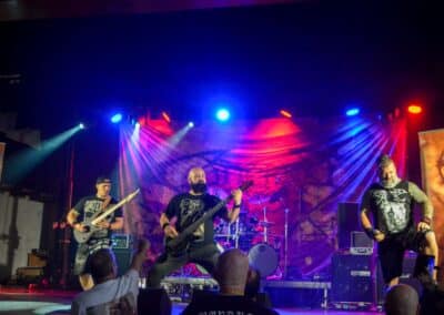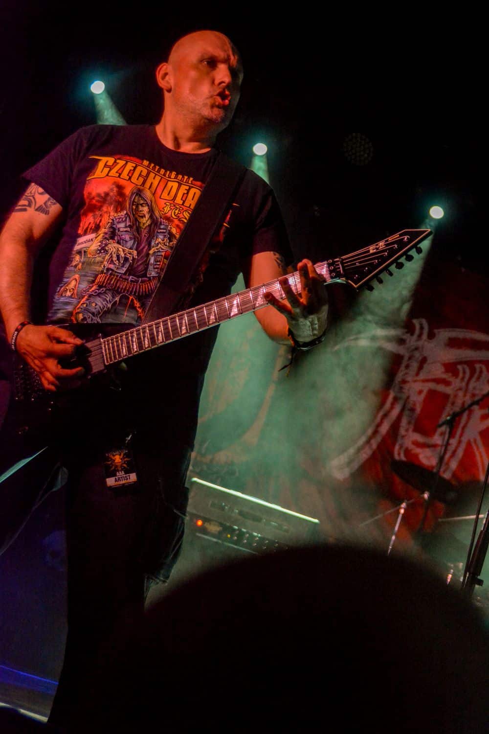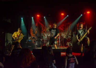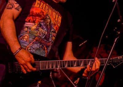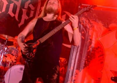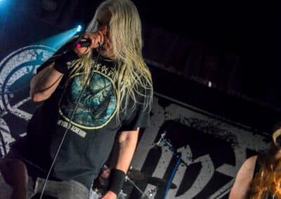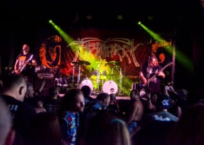 A hallgatóság innentől fogva nagyjából húsz perc alatt összekotorta magát, ugyanis színpadra lépett a cseh Tortharry. A lassan 35 éve működő death metal gépezet olyan szinten fogalom, mint Lengyelországgal kapcsolatban a Vader, és a fellépésük ezen pozíciójukat finoman szólva is megerősítette. Gitár-basszusgitár-dob a felállás, mind a bőgős, mind a gitáros énekel, és tulajdonképpen abban a 40 percben, ami rájuk jutott, elég komolyan rendet tettek. Majdnem tisztán szóltak – az egyetlen panaszom az, hogy a basszusgitár dallamait és kiállásait nem lehetett tisztán hallani –, de ezzel együtt is egy nagyon élvezhető és nagyon kellemes fellépést produkáltak a fiúk. A megelőző koncertek során mintha kicsit leült volna a hangulat, azonban a Tortharry működésének kezdete után pár perccel máris beindult az ugrabugra és a moshpit. Többen nem lettünk persze ilyen hirtelen, de azok, akik eljöttek és végighallgatták ezt a fellépést, jól láthatóan a Tortharry miatt voltak ott. Státusz, nem státusz: ezzel együtt is hosszas köszönetet mondtak a szervezőknek és a többi fellépőknek, és folytatták a fegyelmezést a csehek. Ez a stílusú death metal igazából nem a kedvenc műfajom, de le a kalappal mind a hangulatért, mind pedig azért a technikai tudásért, ami a zenekar mögött áll.