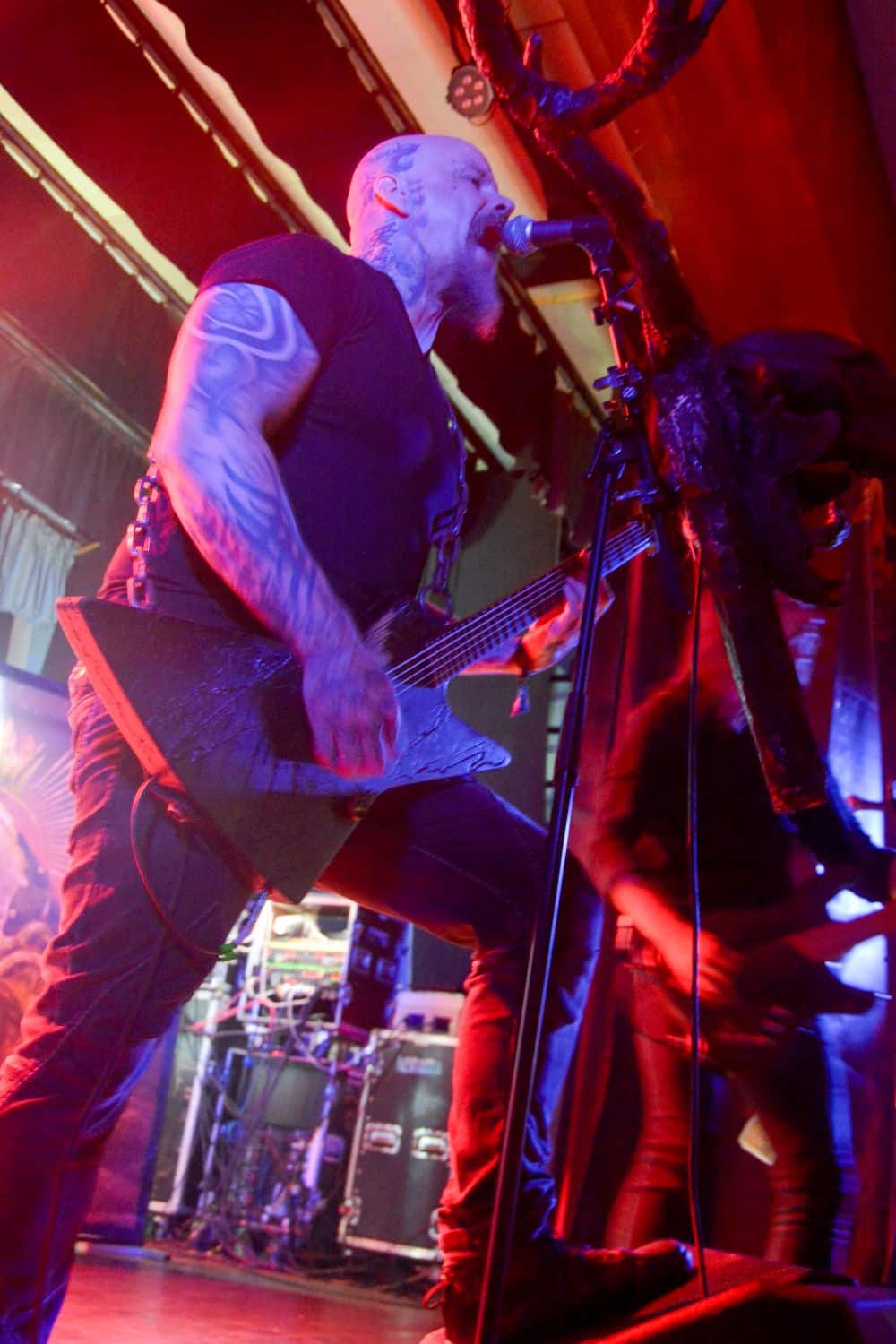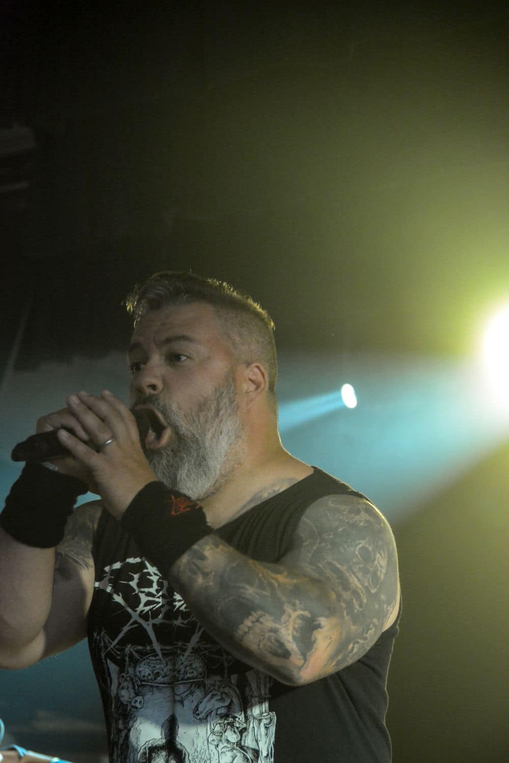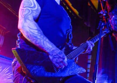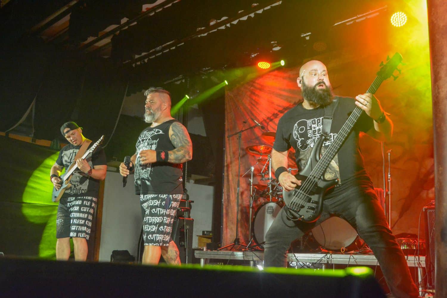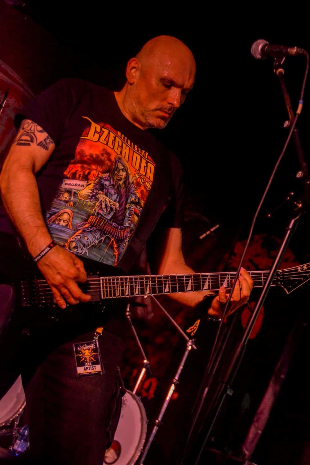 A hallgatóság innentől fogva nagyjából húsz perc alatt összekotorta magát, ugyanis színpadra lépett a cseh Tortharry. A lassan 35 éve működő death metal gépezet olyan szinten fogalom, mint Lengyelországgal kapcsolatban a Vader, és a fellépésük ezen pozíciójukat finoman szólva is megerősítette. Gitár-basszusgitár-dob a felállás, mind a bőgős, mind a gitáros énekel, és tulajdonképpen abban a 40 percben, ami rájuk jutott, elég komolyan rendet tettek. Majdnem tisztán szóltak – az egyetlen panaszom az, hogy a basszusgitár dallamait és kiállásait nem lehetett tisztán hallani –, de ezzel együtt is egy nagyon élvezhető és nagyon kellemes fellépést produkáltak a fiúk. A megelőző koncertek során mintha kicsit leült volna a hangulat, azonban a Tortharry működésének kezdete után pár perccel máris beindult az ugrabugra és a moshpit. Többen nem lettünk persze ilyen hirtelen, de azok, akik eljöttek és végighallgatták ezt a fellépést, jól láthatóan a Tortharry miatt voltak ott. Státusz, nem státusz: ezzel együtt is hosszas köszönetet mondtak a szervezőknek és a többi fellépőknek, és folytatták a fegyelmezést a csehek. Ez a stílusú death metal igazából nem a kedvenc műfajom, de le a kalappal mind a hangulatért, mind pedig azért a technikai tudásért, ami a zenekar mögött áll.