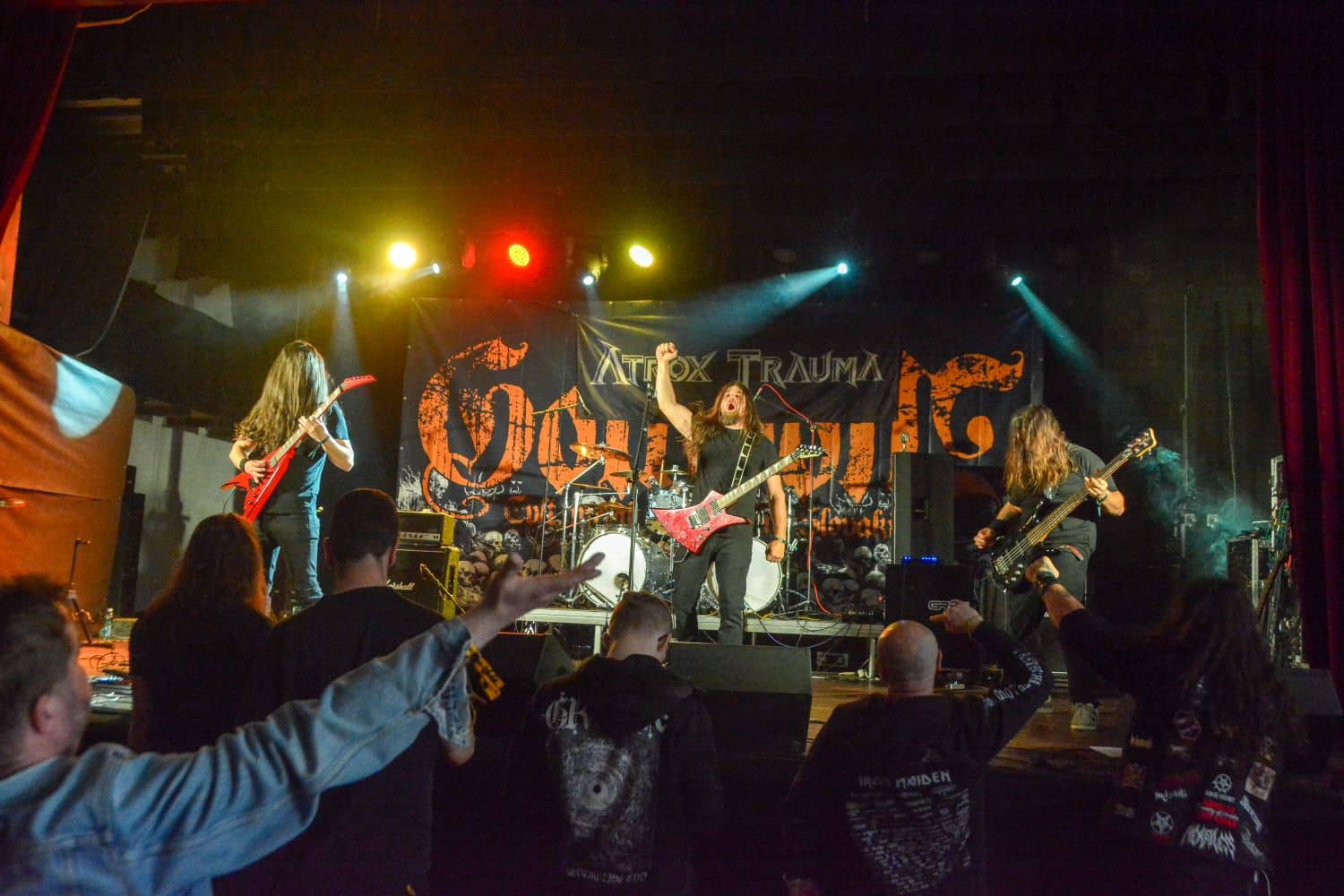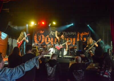 A következő fellépő magyar Atrox Trauma volt: nagyon kíváncsi voltam, hogy ez a produkció pontosan hogyan fog kinézni – különösen úgy, hogy azért teltház még a legkevésbé sem volt. A hallgatóságon a megismerés és tanulás folyamatát tanulmányozhattuk részleteibe menően: az első két dalnál mindenki tulajdonképpen keresztbe tett kézzel állt és hallgatta a zenét – meg merem kockáztatni, hogy nem ismerték a zenekart, és így a fordulatszámot sem vették fel. Az idő előrehaladtával a hozzáállás jelentős változáson ment keresztül: egyre többen kezdtek el ugrálni-mozogni a dalok alatt, sőt, az egyik mankóval érkező kolléga (aki régi bútordarab minden Gothoom-on) valószínűleg valami isteni sugallat hatására feldobta a színpad szélére a mankóját, és beállt a párszor tíz fellépővel együtt ugrálni – innen is látható, hogy a zene gyógyít és csodát tesz. Az Atrox Trauma-ra is csak negyven perc jutott, ám ezzel együtt is sokkal nagyobb bulit csináltak, mint a helyiek számára már jól ismert Cuttered Flesh – vagy akár a nyitó Welicoruss –, és a végén egészen komoly közönség hallgatva a zenéjüket. Felmerülhetne persze, hogy alapvetően a magyar vendégek pörögtek föl a magyar zenekart hallgatva, de erről szó sincs: a cseh, lengyel és szlovák közönség tökéletesen fölvette a fordulatszámot a fellépés végére. Az Atrox Trauma fellépését követően gyorsan hátramentem a backstage-be gratulálni a srácoknak: nagyon nagy bulit csináltak, és ami külön figyelmet és dicséretet érdemel, hogy mindezt nemzetközi terepen érték el. Egyre több ilyen zenekarral büszkélkedhetünk, és ez most kezd szép lassan a fokmérője lenni a minőségnek – legalábbis az én szememben.