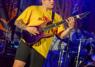 Pár perc, és színpadra lépett az olasz Hideous Divinity: a buli beindult a színpadon, a szabadtéren pedig szépen lassan az esti eső lehetősége kezdett körvonalazódni. Az olaszok kevésbé vették fegyelmezősre figurát, mint a megelőző Tortharry, ezzel együtt is meglehetősen nagy mozgást produkáltak. Alapvetően dallamos death metal-t játszottak sok-sok szólóval és kiállással – mindenképpen egy lazább és könnyebben élvezhető zene, mint a Tortharry, és ez a váltás a hallgatóságon is látszott. A moshpit és a benne résztvevők hirtelen eltűntek – volt, aki az átlagoshoz képest is hosszabb pihenőre indult –, ezzel új rajongók jelentek meg a színen, akik alapvetően az olaszok fellépésre voltak kíváncsiak. Hathúros basszusgitár-gitár-dob-ének volt a felállás, és a technikai tudással kapcsolatban nem merülhetnek föl kérdések. A basszusgitár egy leheletnyivel halkabban szólt, mint ahogy az ideális lenne, és emiatt sajnos nem lehetett mindig tisztán hallani, hogy az olasz kolléga – mind a hat húr felhasználásával – milyen elképesztő kísérletet pakol a zene alá. Az egy szál gitár már önmagában jelentős korlátozásokat jelent, de ez igazából nem jött át a zenén: az embernek nem volt olyan érzése, hogy a szólók vagy a bonyolultabb kiállások csak úgy lógnának a levegőben. Összességében az olaszok fantasztikus hangulatot teremtettek, és akit a Tortharry-nak nem is sikerült, azt ők biztosan felpörgették a cseh nemzeti csoda, a Gutalax fellépésére.