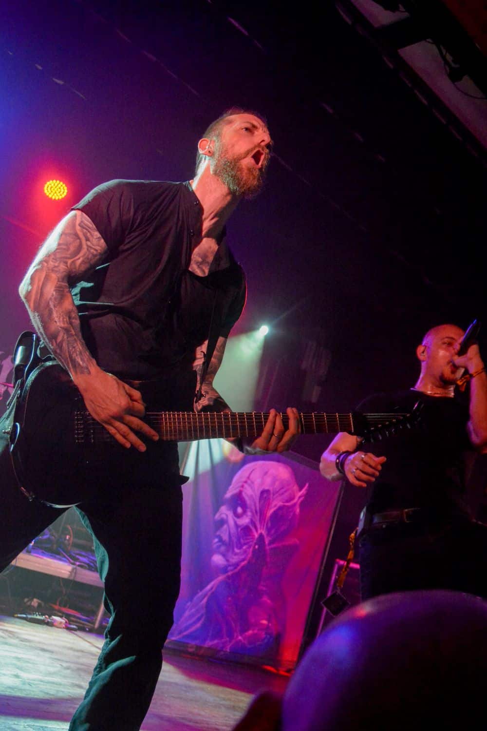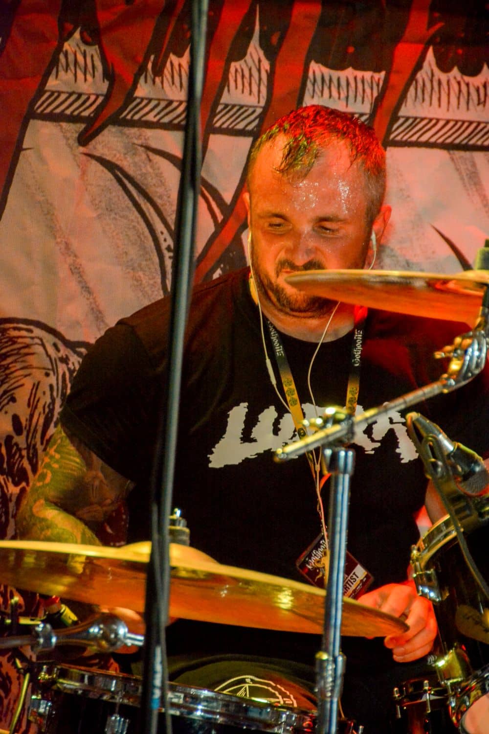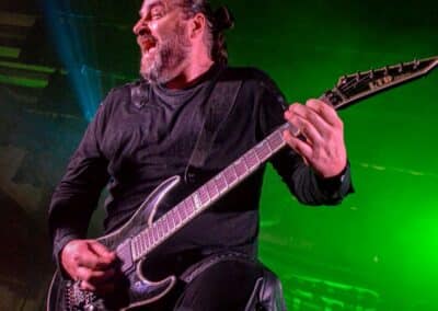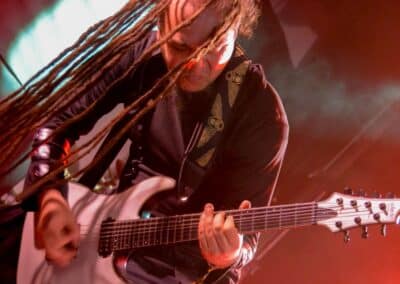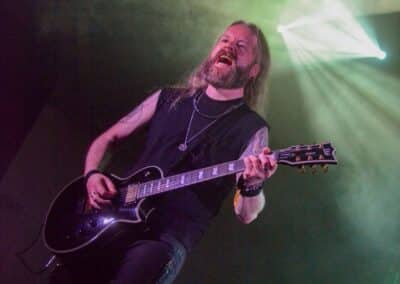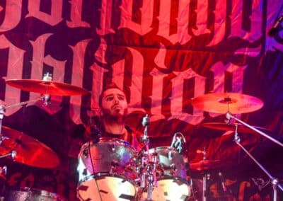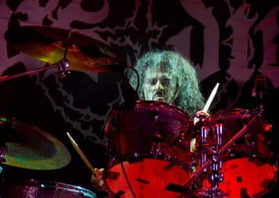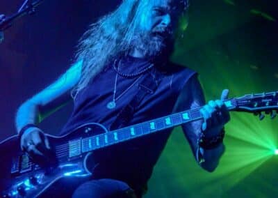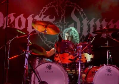 „Nem, mi nem az Asphyx vagyunk” – közölte a kontyos-szakállas, barna hajú, alacsony gitáros. Simán előfordulhat hogy volt, akinek csak ezen a ponton esett le, hogy csere történt, és beelőzött a Keep of Kalessin. Legutoljára a Covid előtt láthattuk őket a régi Dürerben, és azóta azért történt egy-két dolog a zenekar háza táján, például a hosszú várakozás után kijött egy új anyaguk. Rövid idő állt rendelkezésükre, de ügyesek voltak, így az életmű majdnem minden anyagáról tudtak valamennyit játszani – jellemzően az új albumokról két-két dalt hallhattunk, a régebbi anyagokról pedig csak szemezgettek. Nagyon kedves ajándékot kaptam Arnt-tól és tettestársaitól: az egyik első dal tőlük, ami helyből a kedvencem lett, a Come Damnation még az őskorból – és ezt játszottak most utolsó előttiként. Kivételes társaság voltak ők, ugyanis pár perccel a fellépés vége után az egész Keep of Kalessin bevonult a saját merch-pultjába, ahol lehetett velük pacsizni meg beszélgetni.