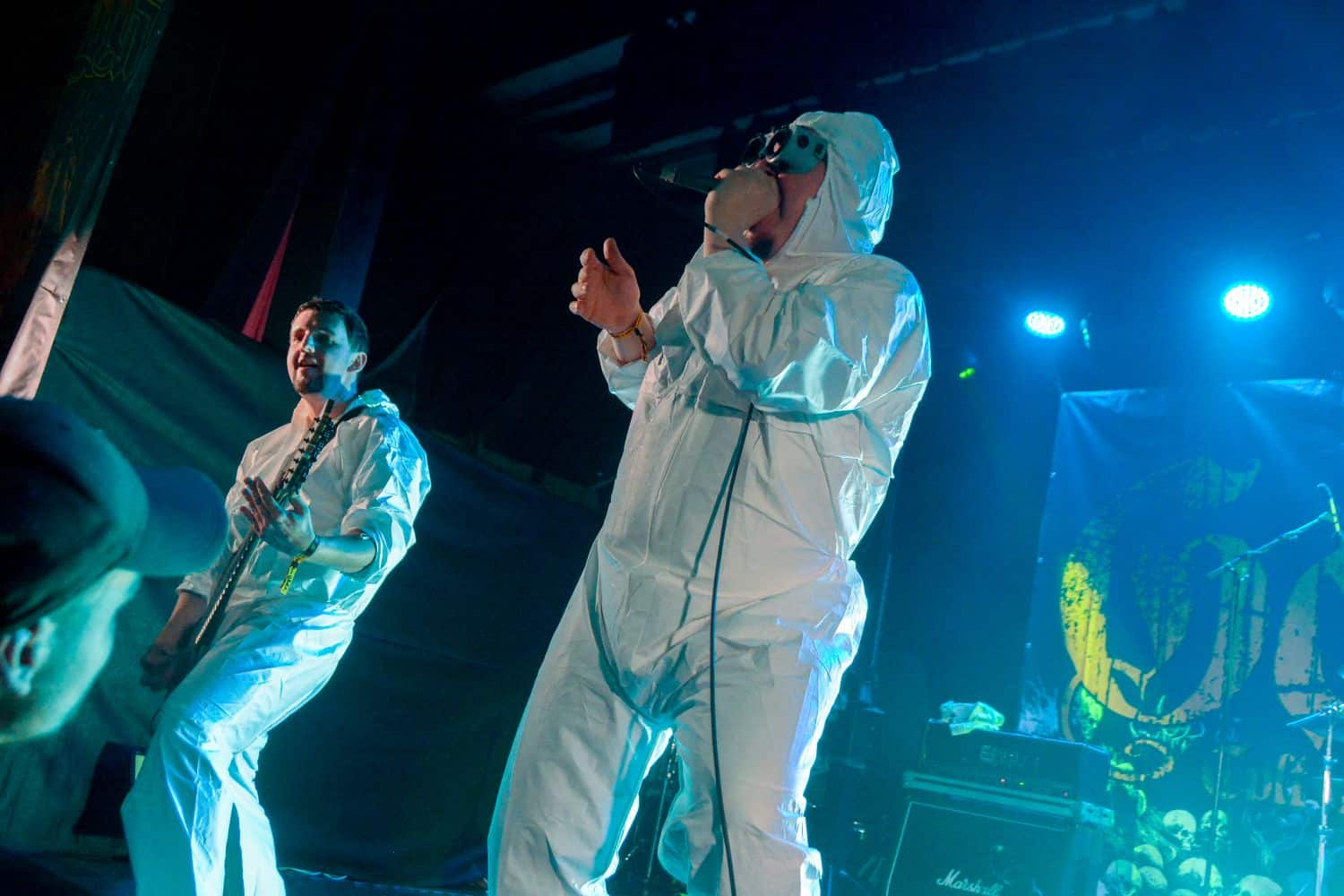 Az elmúlt tizenöt év során hosszú, kitartó munkával elkerültem a Gutalax fellépéseit, és azt kell hogy mondjam, hogy ez stratégiai hiba volt. Én alapvetően zeneként próbáltam értelmezni a Gutalax működését, és ez egy teljesen helytelen megközelítés: az egész zenekar tulajdonképpen a műfaj saját kabaréjának mondható, tökéletesen kifigurázva az összes olyan dolgot, amit ebben a stílusban értéknek tartunk. Ez egyrészt egy olyan dolog, ami viszonylag jó hatásfokkal mutatja a műfaj toleranciáját – a saját, teljesen brutális kritikáját is elfogadja –, másrészt pedig teljesen új távlatokat nyit meg. Adott egy gitár, ami valami többé-kevésbé dallamos sramlit játszik a komolyság legcsekélyebb jele nélkül, mindezt tökéletesen lekíséri egy basszusgitár, nagyjából hasonló filozófia mentén. Az egészet tulajdonképpen az ének fogja össze, ahol effektíve dalszöveggel nagyon nem igazán találkozunk, alákamuzott hörgéssel viszont annál sűrűbben. Érdekes ez a hörgés: nagyjából a 40-től 20000 Hz-ig terjedő tartományt fogja át, és tulajdonképpen anélkül, hogy értelmes szöveg hangzana el, tökéletes zenei élményt nyújt. Mint említettem, az egész fellépés a műfaj paródiája, és erre a műfaj hallgatói tökéletesen vevők, akár a vécépapírguriga-dobálásra, akár a vécékefe-lengetésre gondolunk. Nem kellett messzire menni, hogy kiderüljön: az infantilis fellépők lelki életkora vélhetően az öt évet sem éri el, merthogy a setlist második dalánál az énekes nekiállt mind gitáros, mind a bőgős fenekét kitörölni – ebben a koordinátarendszerben a hétéves fiam már megtört aggastyánnak számítana. Mindenesetre a rendszer tökéletesen működik: a hallgatóság eszméletlenül élvezte, és azt hiszem, hogy ez egy olyan tünet, ami tökéletesen leírja az extrém metal underground-ot: itt annyira tágak a határok, hogy a műfajon belül annak saját paródiája is tökéletesen életképes lehet. Javaslom egy hasonló koncert végighallgatását a teljesen elborult, és a műfaj mélységeit drámaian megélő hallgatóságnak – ebbe most saját magamat is belevettem –, ugyanis innentől egy kicsit más szemüvegen keresztül fogják-fogjuk látni szeretett műfajunkat.