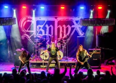 Mindeközben melegített az Asphyx, a fesztivál számomra utolsó fellépője. Sokadjára hallgattam őket, de továbbra sem nagyon tudok ezzel a zenével mit kezdeni; számomra teljesen egységsugarú metal, ahol az első egytucat dal meghallgatása után már nem várhatunk nagy meglepetést. Nem szóltak jól, a hangzás kicsit kásás volt, de ezzel együtt is egy fergeteges show-t nyomtak, amire a szorgalmasan ugráló-bólogató teltház nagyon vevő volt.