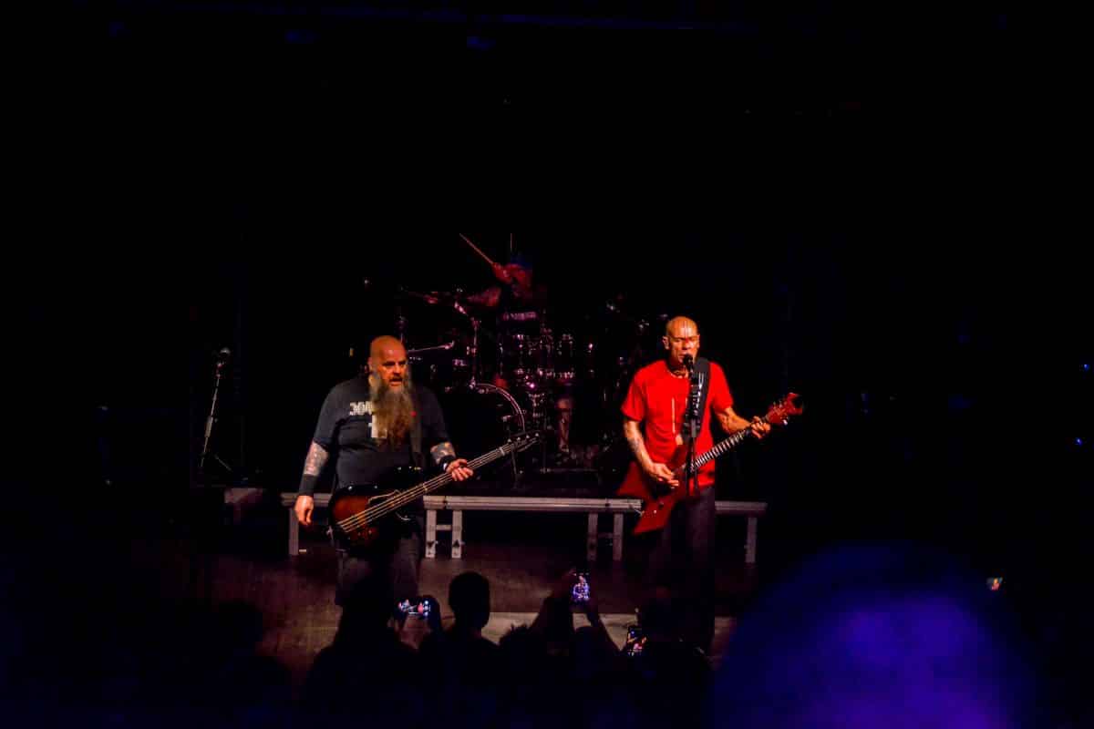 Ezután rövid szünet, majd pedig megkezdődött a maratoni fellépés 28 számmal, bőven több mint két órában (Testek, Miénk a hely, A lélek útja, Félj, Krisztus hiába sír, A Föld, Add meg, Körbe jársz, Holnap megváltozom, Magányos harcosok, Valami vár itt rám, Átverés, Feszíts meg / Keress valaki mást, Körbe ért, Mindent akarok, Egyszer élünk, Ez a sorsom, Nem hiszek, Szabadíts meg, Ima, Igazi kép, Érezhessem, Hol az ellenség?, Aki megmondja mit csinálj, A film, Boldog élet, Kezdet és a vég). Ezen az estén két etapban egy Replika best of-ot hallhattunk jópár olyan szám társaságában, amik vagy nagyon ritkán szólaltak meg élőben, vagy pedig – emlékeim szerint – nem is szerepelt még koncerten. Mint említettem, teltház volt, és azügyben, hogy mennyire lesz sikeres ez az este, nem nagyon volt ok aggodalomra: a közönség tulajdonképpen az első dal első hangjainál felvette a fordulatszámot, és olyan ugrálás meg zenekarral együtt éneklés volt, mintha az elmúlt tíz évet egészen egyszerűen kivágták volna naptárból. Egészen minimális technikai malőröktől eltekintve (igen, ettől lesz élő a fellépés) nagyon korrekt volt a hangzás: mindenki tisztán szólt, és amit külön értékeltem, hogy a dob, a basszus és az ének nem nyomta el az egy szál gitár hangját – ez nagyon könnyen megtörténhetett volna, és ha így alakul a helyzet, akkor tulajdonképpen az egész fellépés ki van herélve. Folyamatosan figyeltem, hogy hogyan változik a bőgő hangja: Falat egy részt 10 húros basszusgitárral tolt le – egy ilyen műszer tulajdonképpen egy közönséges öthúros basszusgitár, ahol minden húrral párhuzamosan fut egy vékonyabb, egy oktávval magasabb húr. A két húrt egy mozdulattal lehet megpengetni, és ami a lényeg: a magasabb hangszínű, vékonyabb húr jobban kitölti a teret a basszus és a szóló között. Füleltem, füleltem – miközben persze dalonként valahol teljesen máshol álltam – de ezt a különbséget már nem hallottam ki; mindenesetre nem éreztem, hogy zavaróan lebegne Csató gitárhangja a nagy semmi közepén.