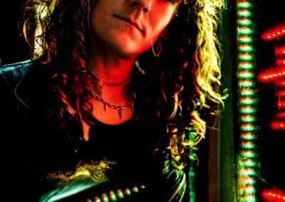 The story is quite simple. Tailgunner were filming a music video, and since I had created the album’s visuals, they asked me to shoot the behind-the-scenes material as well. During the shoot, a photo series was being created for Guitar World featuring Rhea and Zach, and K. K. Downing also needed to be photographed. Tom asked if I would take on that session, too. I didn’t hesitate. The shoot took place at his own venue, KK’s Steel Mill in Wolverhampton. It was a Sunday. The club was empty. Just the band, me, and technicians adjusting lights. Calm and focused. At one point, while they were fine-tuning equipment, we listened to Guns N’ Roses“Sweet Child O’ Mine” about a hundred times, which set the mood, haha… I walked in thinking: „Every iconic rock photographer has already photographed this man. I have to bring something different.”