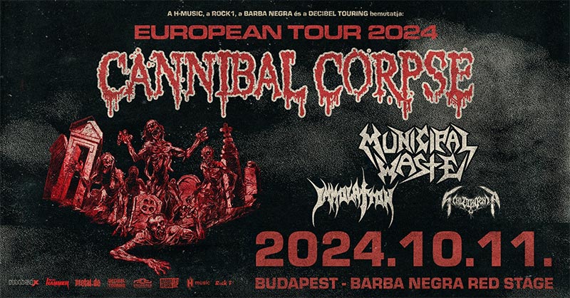 Sajnálatos hír azonban, hogy a zenekarral 2020 óta együttműködő legendás gitáros, Erik Rutan nem tart a zenekarral a turné második szakaszában, ugyanis a szeptember végén pusztító Helene hurrikán rendkívüli károkat okozott az USA-ban és sajnos a zenész otthonát is érintette, így emiatt haza kellett utaznia. Ezúton is minden jót kívánunk neki és családjának! Bár emiatt talán rendhagyónak és különlegesnek lesz mondható a hazai koncert, ugyanis még sosem lépett fel ezelőtt a Cannibal Corpse négyes felállásban itthon, sem pedig máshol. Tehát minden, ami gitár, az Rob Barrett mester művét fogja ezen az estén dicsérni, de valószínűleg egymagába is gondoskodni fog Alex Webster, Paul Mazurkiewicz, és a bikanyakú / angyalhangú George Corpsegrinder Fischer, hogy senki ne térjen haza csalódottan!