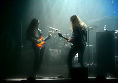Az Amorphis szerintem fénykorát éli. Jobbnál jobb anyagokat adnak ki, de nagyon sokszor éri őket az a kritika, hogy tulajdonképpen ugyanazokat a kliséket variálják. Ez annyira igaz rájuk, mint mondjuk a Cradle of Filth-re, a Deicide-ra vagy a Cannibal Corpse-ra: a saját maguk által teremtett kis ökoszisztémában változatos és gyönyörűszép dalokat alkotnak. Minden különösebb cirkusz nélkül felsétáltak a színpadra, és kezdetét vette a koncert… mit koncert, nagybetűs koncert… ahol sorban hangzottak el az Amorphis legnagyobb slágerei, természetesen a megkerülhetetlen Black Winter Day is. Nem néztem az órámat, de nagyon gyorsan elrepült az az idő, amit kaptak – úgy érzésre azt mondtam volna, hogy a buli felénél járunk, amikor Tomi már búcsúzó ravette a figurát, és a ráadás dalai következtek. A hangzás kristálytiszta, tankönyvi, sok-sok zenekar eljöhetne a fellépésükre tanulni. Nagy tapsot kaptak, a hallgatóság pedig fültől fülig vigyorral hagyta el a koncerthelységet – legalábbis én így sétáltam hazafelé.