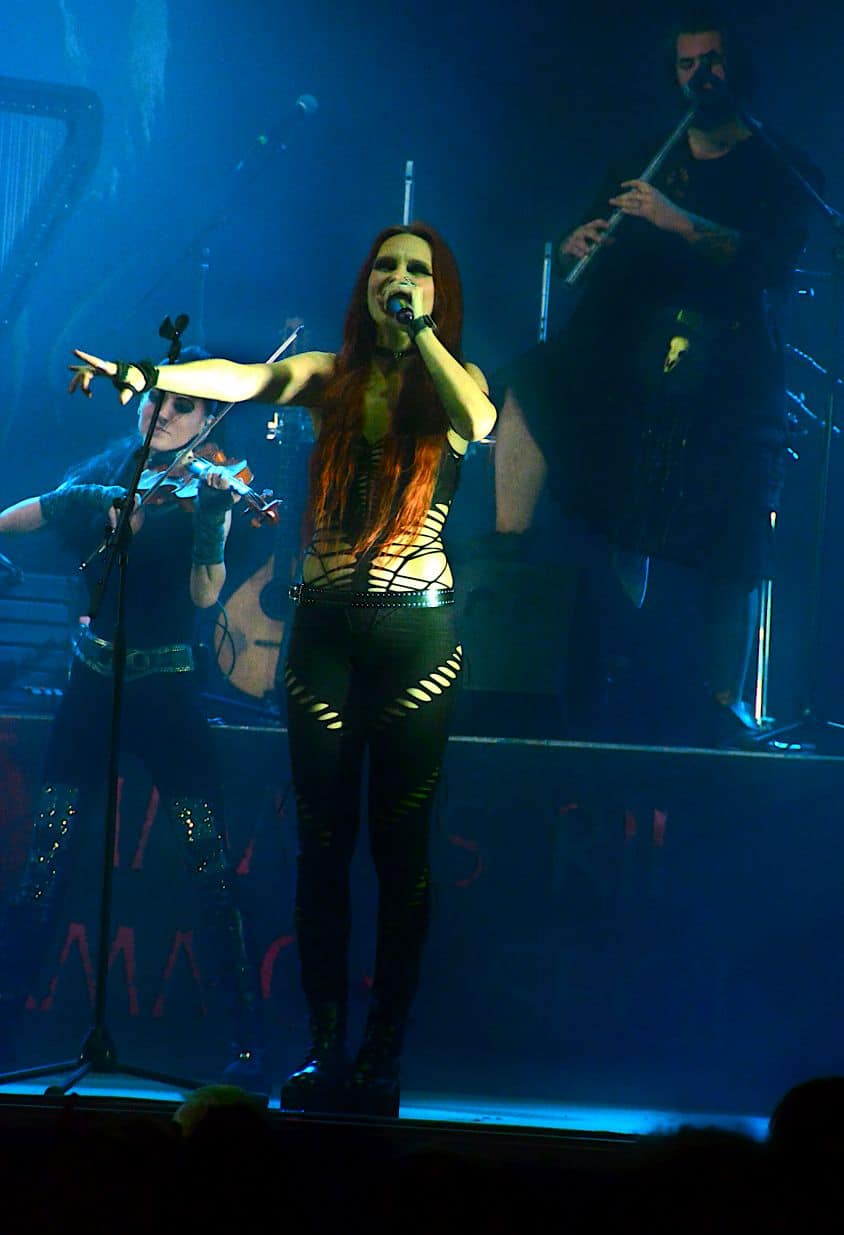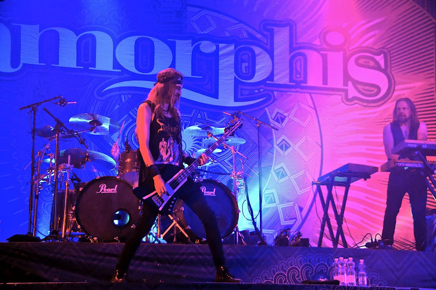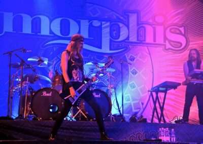 Ezután a svájci Eluveitie vette birtokba a színpadot. Komolyan aggódtam, hogy a kilencfős társaság hangosítását hogy lehet úgy megoldani, hogy mindenkiből azért hallatszódjon valami – a gitárok, dob és ének viszonylag alap, itt tökéletesen sikerült minden, a hegedű is rendesen hallatszott, viszont számomra a hárfa volt az a hangszer, ami eltűnt a nagy hangkavalkádban, úgyhogy 100% helyett csak 98%… hát, együtt élek vele valahogy. Ízlelgessük csak azt a szót, hogy zenész: az az ember, aki hangszeren játszik – egy komoly zenész meg akár többön is, mint például a frontember Chrigel Glanzmann, aki akár egy számon belül is hol húros, hol fúvós hangszeren szolgáltatta a talpalávalót. Fabienne Erni-éknél nem szeretnék egy családi veszekedés hallgatója lenni, résztvevője meg pláne nem: a hölgy hangja ellenállhatatlanul betöltötte az egész teret, és az Eluveitie egy összességében fantasztikus fellépés után adta át a színpadot az Amorphis-nak.