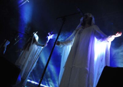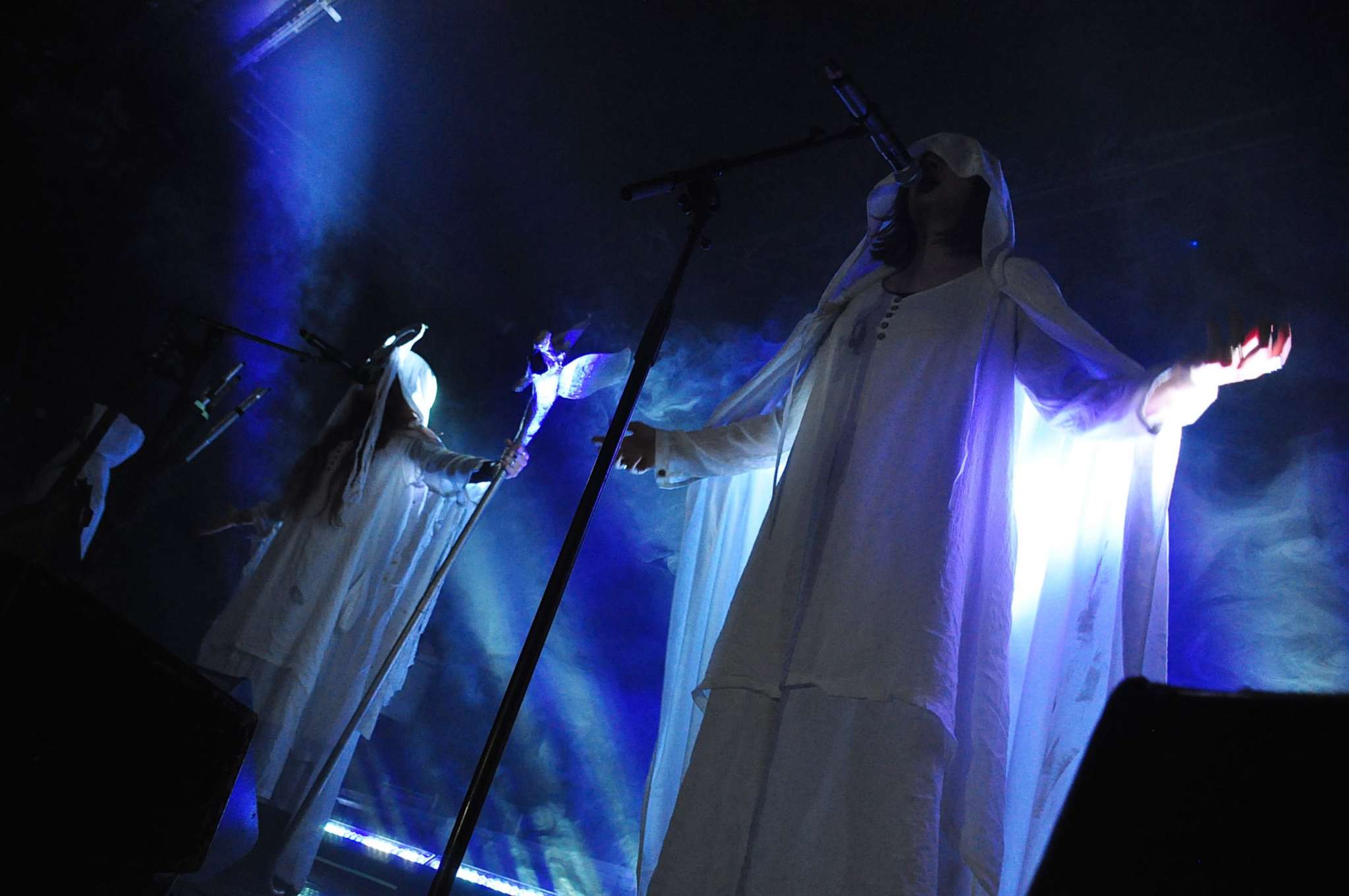 Végre elérkezett az Eluveitie, bár hirtelen nem tudtam, mi fog történni, ugyanis nemcsak, hogy Wardruna szólt a színpadra lépés előtt (istenemdeimádom, jöjjenek már!), hanem maga a koncertkezdés is egy ilyen fehér lepelbe öltözős rituálé volt, valami elképesztő, nem teljesen evilági (legyen mondjuk kelta túlvilág) hangulatot teremtve.