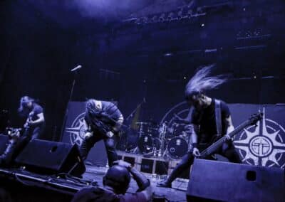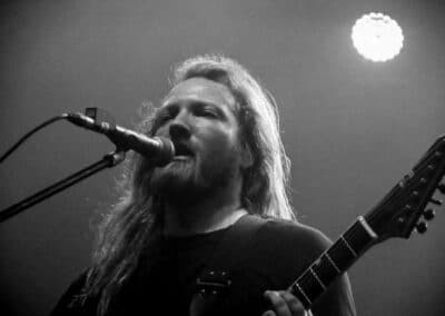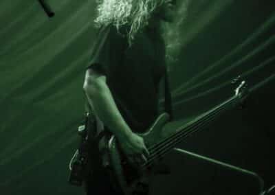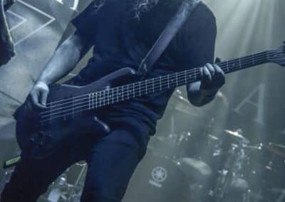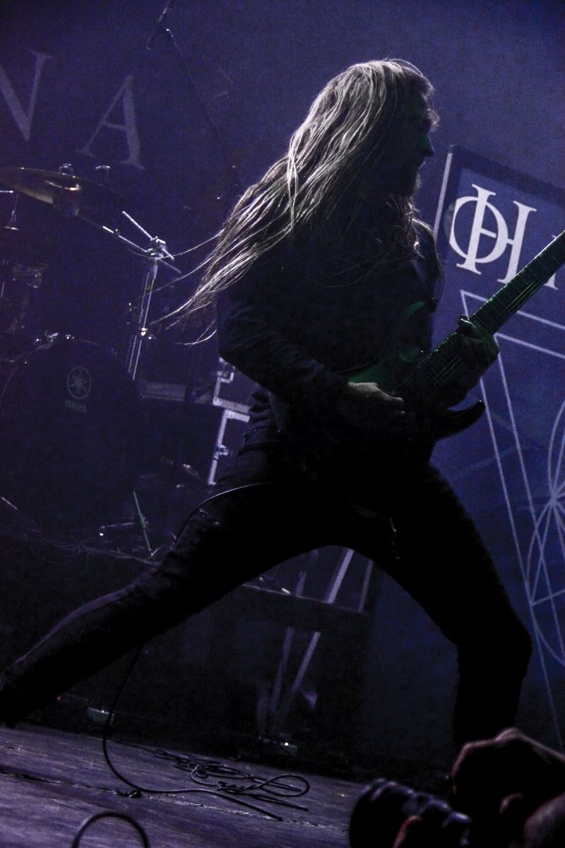 A fél nyolcas kezdéshez kapunyitás hatkor – tulajdonképpen a személyzeten kívül csak én lézengtem arrafelé –, aztán szépen lassan elkezdett gyűlni a nép, hogy a kezdésre egy nagyjából félháznyi közönség jöjjön össze. Amikor eljött az idő, óramű pontossággal vonultak fel a fiúk a színpadra, és kezdetét vette a Hinayana fellépése. Az amerikaiak egy kellemes, nem túl bonyolult melodeath vonalon mozogtak; nagyon szépen szóltak, minden hangszer tisztán hallatszott, és szerencsére a dob sem akarta elnyomni a gitárokat. Számomra az egész zenekar – és az egész zene – picit megfoghatatlanul lebegett valahogy a semmi közepén: az egész fellépés során egy nagyon kellemes, hangulatos, szórakoztató melodeath-et halhattunk az austini csapat tolmácsolásában, de folyamatosan az az érzésem volt, hogy az egész zene óvakodik attól, hogy – extrém metal létére – bármilyen szélsőség irányába bármilyen elmozdulást produkáljon. Gyorsnak nem volt gyors, lassúnak nem volt lassú, és számos már paraméterre is el lehet mondani, hogy mindig valahogy egy arany középutat találták meg a fiúk, ami – ismétlem – egy nagyon kellemes, hallgatható, igazán magával ragadó, ugyanakkor meglehetősen fajsúlytalan zenét eredményezett (Death of the Cosmic, Cold Conception, In Sacred Delusion, Spirit and Matter, Reverse the Code, Triptych Visions, A Tide Unturning).
