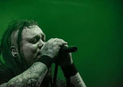 Gyors átszerelés, és elkezdődött Tuomas Nagy Menetelése. A fiú elsősorban a Wolfheart frontembereként ismert; ez magyarra lefordítva azt jelenti, hogy a zenét ő rakja össze, ő dobol, billentyűzik, bőgőzik, énekel, és gitározik, fennmaradó idejében pedig a nem olyan régen reaktivált zenekarjaival – például a Before the Dawn-nal – foglalkozik. Hogy mindezt pontosan hogyan lehet menedzselni – illetve Tuomas hogyan is menedzseli –, arról nemsokára részletesen olvashattok ezeken a hasábokon. Lényeg a lényeg: megkezdődött a Before the Dawn fellépése. Az interjú során jóízűt röhögtünk Tuomas-szal, merthogy technikus nem hoztak magukkal – tehát ő volt a saját gitártechnikusa, és a Before the Dawn fellépése során a dobokat is ő állította-hangolta. Ha nem lennének további meglehetősen fajsúlyos fellépők előjegyezve az év hátralévő részére, akkor erősen elgondolkoznék, hogy az „év fellépései”-listára ezt az eseményt benevezzem – de azért ez még talán egy kicsit korai. Hallgattam a Before the Dawn-t, próbáltam felkészülni a fellépésre, de élőben valami egészen elementáris volt. Tuomas – aki próbált felnőni a Before the Dawn eddig dobosaihoz – mindezt remekül csinálta, tök pontosan és precízen ütött, nem dobolta szét a dalokat, hanem a kísérletet biztosította, pontosan annyira, amennyire erre szükség volt. Hasonló módon lehet jellemezni a gitár és a basszusgitár működését is: szó sem volt arról, hogy szétreszelnék a dalokat, nem láttunk kétkezes basszusgitár-kiállást – de ezzel együtt is egy olyan lendületű fellépést kaptunk, hogy le a kalappal előtte. Persze tremolo picking-gel és duplázóval időnként megfűszerezték a dolgot, de alapvetően valahol a középtempó környékén jártunk – semmi extrém zenei produkciót nem láttunk és nem hallottunk, de ezzel együtt is lendületes és fülbemászó dallamok hosszú-hosszú sorát élvezhettük végig, amik alaposan meg is ugráltatták a közönséget (Unbreakable, Destroyer, My Darkness, Faithless, Dying Sun, Chains, Downhearted, The First Snow, Winter Within, Wrath, Deathstar, Deadsong). A Hinayana-val összehasonlítva igazából zenei eszközökben, stílusban meg egy csomó dologban nagyon hasonló volt a két zenekar működése, mégis, a végeredmény tekintetében nagyjából ég és föld volt a különbség. A legfontosabbról pedig így a vége felé legyen szó, ő a zenekar énekese, Paavo Laapotti. Egy kezemen meg tudom számolni azon aktív metal-énekesek számát, akiknek a tiszta énekhangja és a hörgése is csodálatos (lásd még Tomi Joutsen – úgy tűnik, hogy ezek a finnek tudnak valamit), és szégyen ide-szégyen oda, számomra eddig nem volt egyértelmű, hogy erre a listára Paavo is odatartozik. A tegnapi produkció teljes mértékben elképesztett: a dallamos, lüktető dalok tiszta és hörgő énekhanggal valami olyan varázslatos légkört teremtettek, ami alól most – a beszámoló írása során – is csak nehezen tudok szabadulni. Elhallgattuk volna őket másnap reggelig, de sajnos elfogyott az idő, és elérkezett a Wolfheart színpadra lépések pillanata.