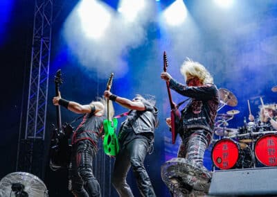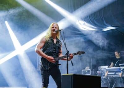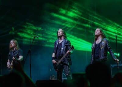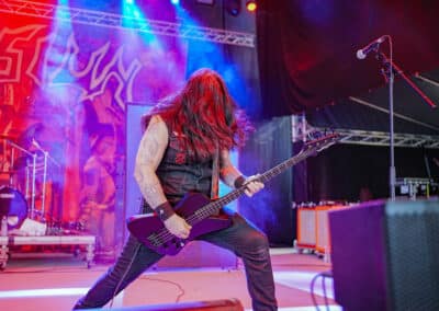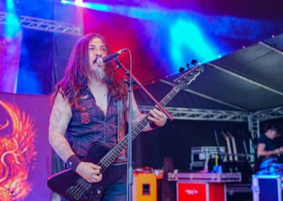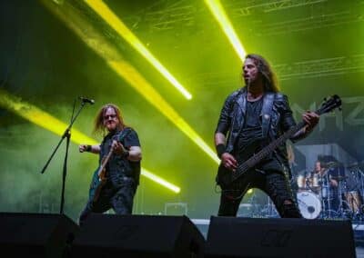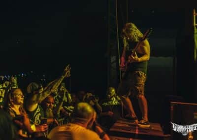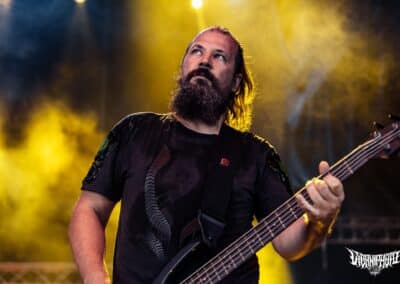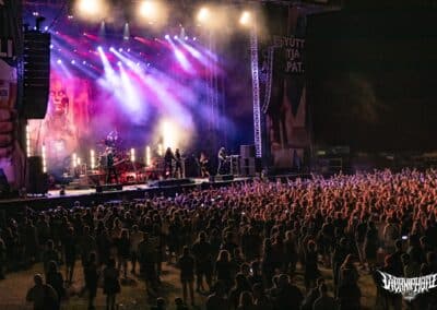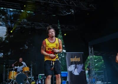 A rendezvényre beígért (és e cikk írása közben is szemtelenül nyomasztó) közel 40 fokos hőmérséklet nem maradt el. Sőt, egészen kitartott a fesztivál utolsó hangjáig és pillanatáig. Utoljára 2022-ben Lowland kiégett, füves pusztáin izzadtam ennyit, és ha lehet azt mondanom, itt is hasonló pokoli hőségben volt részem, de ezt a kellemetlenséget leszámítva (elvégre nyár van) a fesztivál hozta a szokásos feelinget. A Junkies műsorát félig-meddig sátorösszeállítás közben hallgattam végig. Szekeres András és csapata remekül hozta a laza punkos rock and rollt. Faszán megdörrent a Borsodi nagyszínpad hangcumója, különösen Dani basszusgitárja emelkedett ki a soundból, de full nem zavaró módon. Emiatt sokkal több mélyet kaptak a Junkies dalok, önmagukhoz képest sokkal súlyosabb volt az összkép. Nem annyira az én zeném, amit a srácok csinálnak, de a hozzáállásuk / zenei elkötelezettségük továbbra is megnyerő számomra. Főleg, hogy volt egy black metal projektjük Stoneblood néven, ami mementóként szolgált elhunyt barátjuk, Bonya emlékének. (MZ)