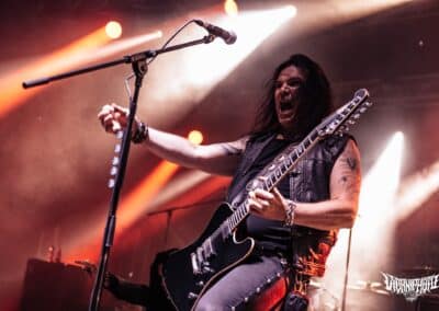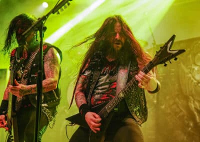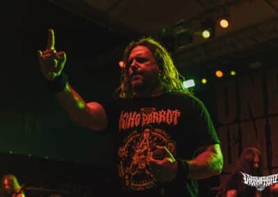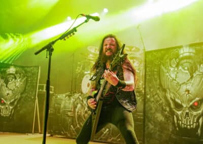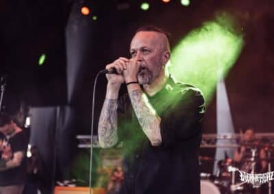 Az est fénypontja a Teuton thrash híveinek tagadhatatlanul a Destruction volt. Sosem voltam nagy rajongójuk, a thrash metal nálam kimerült a Slayer / Exodus / Testament szentháromságban, viszont a mai crossover / thrash-punk bandákat kedvelem. Annak ellenére, hogy nem ismertem behatóbban a Destruction diszkográfiát, pár számot leszámítva, azt kell, hogy mondjam rég vettem részt ennyire horzsolóan intenzív sikolyokkal teli thrash metal mészárlásban és gitárvirgában. Életemben először láttam őket, nagyon viszonyítási alapom sincs, milyen lehetett régen, vagy hogy van-e korai Destruction meg mostani Destruction. Korai Napalm Death van, ez fix, de hogy Schmier és csapata vélhetően ugyanazzal a lendülettel tolja-e a thrash metal égig égő szekerét, nos, abban nem vagyok már annyira biztos. Viszont ez a pokoli performansz teljesen meggyőzött arról, hogy ezekben a tapasztalt és sokat látott germán úriemberekben még annyi fölös energia van, amivel akár egy teljes várost lehetne porig rombolni. Magas oktánszámon pörgött végig a fordulat, egy percnyi pihenő sem volt, csak kíméletlen darálás végig. Durva volt ráeszmélni arra is, hogy maga a formáció azóta létezik ezen a sárgolyón, mint én. Schmier már akkor nyomta a könyörtelen sátánista rock and rollt, amikor még csak gondolat voltam apám fejében. (MZ)