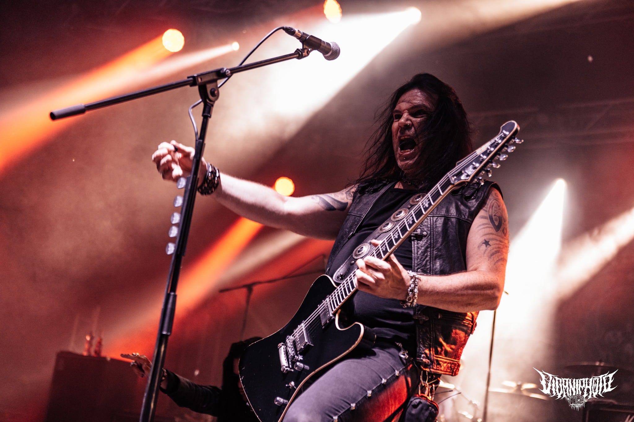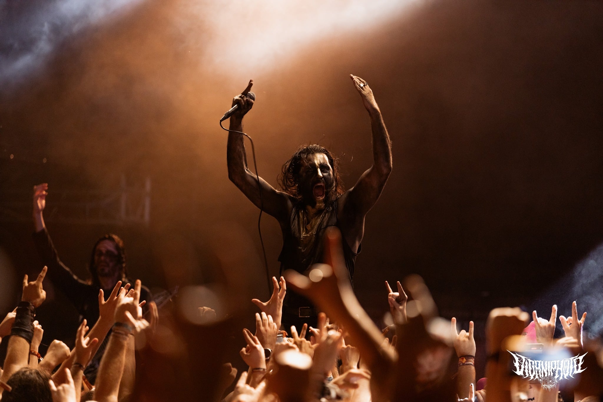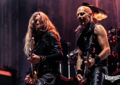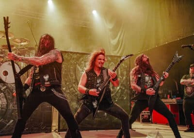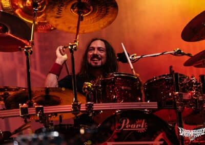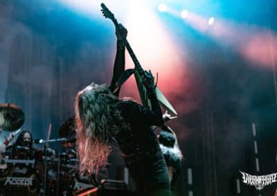 Teljes magabiztossággal álltam be az első sorba az Amorphis kezdete előtt úgy 20 perccel, hiszen tudtam, hogy bárhol is állok, tökéletes lesz a hangosítás– az Amorphis gyakorlatilag a legjobban hangzó koncertzenekar. Bárcsak minden bagázs ilyen profi szakemberekkel turnézna! Szerencsére nem hiába reménykedtem, a jórészt az idén húszéves Tales from the Thousand Lakes-re fókuszáló buli minden szempontból egy tökéletes metalprodukció volt. Néha még mindig hihetetlen, milyen hangok jönnek ki Tomi Joutsen-ből: egyszerre jobban tolja mind a hörgést, mind a tiszta éneket, mint sok egyéb vokalista, aki esetenként “csak” az egyikhez ért. Már csak az hiányzott volna, hogy Anneke van Giersbergen részeit is elviszi az Amongst Stars-ban, de persze azért mindent nem lehet, így az csak felvételről szólalt meg 🙂 Igazságtalan az élet, na; az egyik legjobb hörgős egyszemélyben az egyik legjobb férfiénekes is – lehet utánacsinálni!