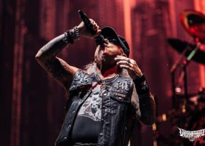 Az ikonikus finn The 69 Eyes elég megosztó műfajban utazik, melyet ők nagyon találóan “goth and roll”-ként emlegetnek (a stílusmegnevezést egy albumcímük is dokumentálja). Számomra nagyon érdekes volt beletekinteni a műsorukba, mivel nem hallgatok ilyesmit, és még sosem láttam gótos jellegű zenekar koncertjét. Egy pár dal után monotonná vált a setlist, ami valószínűleg műfaji sajátosság, túl nagy mozgástér nincs benne. A Jyrki 69 művésznéven ismert Jyrki Linnankivi énekes ismert elbűvölő basszus orgánumáról, ami élőben is nagyszerűen kiemelkedett a zenéből. Valójában talán nem az én generációm a zenekar elsődleges célközönsége, de érdekességnek mindenképp szerettem volna megnézni és meghallgatni őket. (Meg mert finnek, haha.) (Barbi)