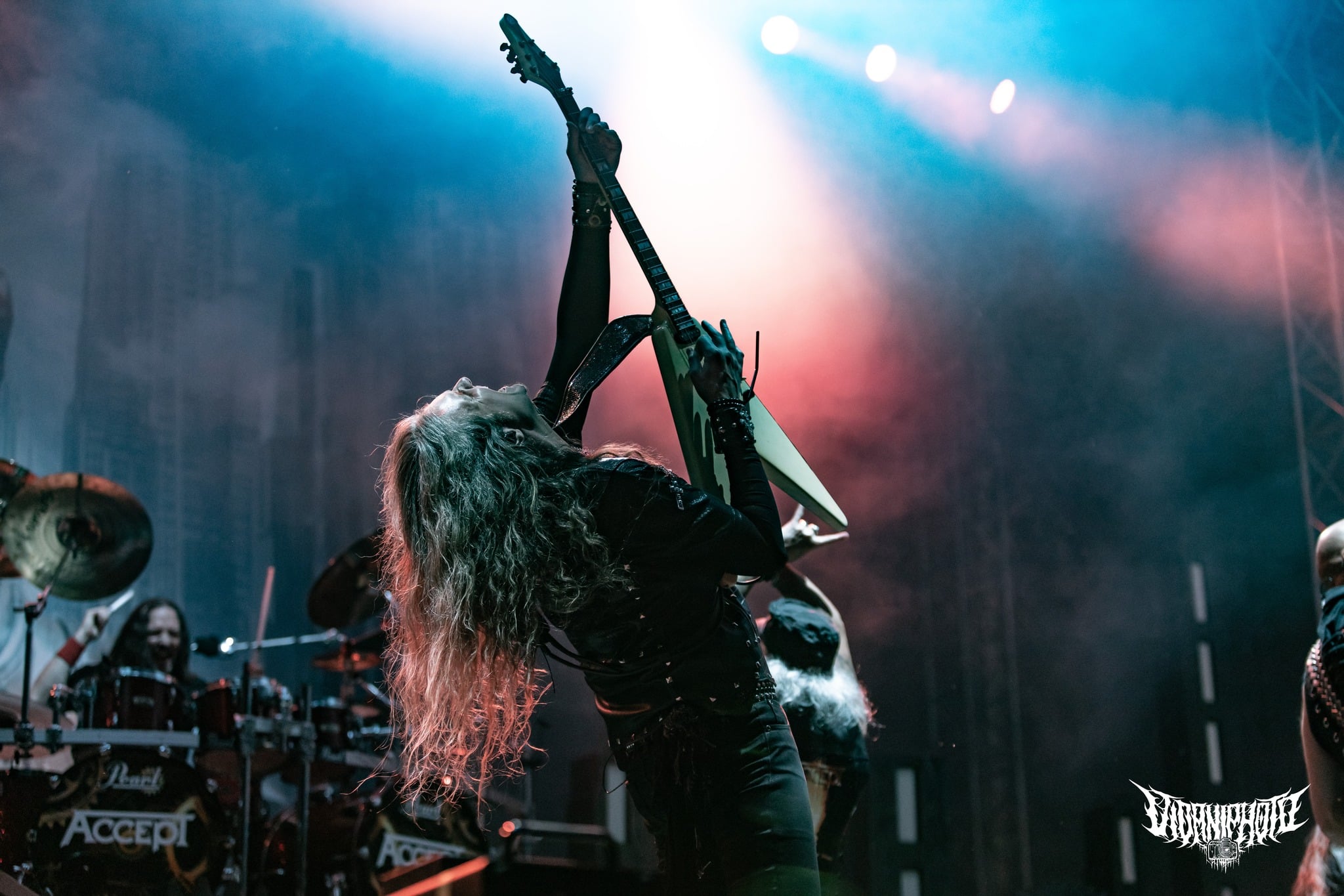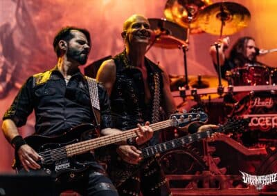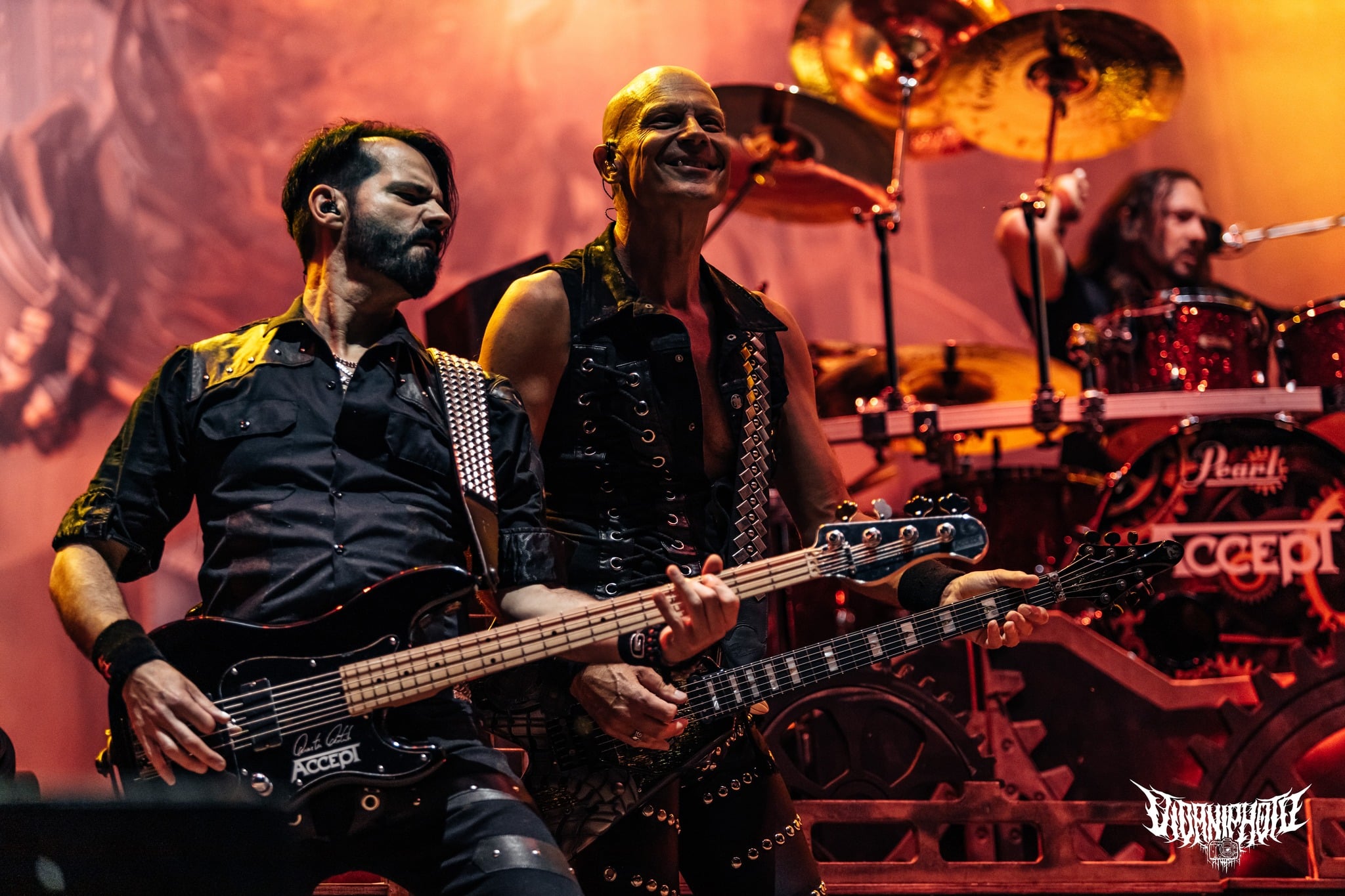 Sajnos elkerülhetetlen ilyen sűrűségű napi fellépők mellett (23-24 banda per nap kb.), hogy valamelyik kimarad, mivel a műsorkezdések telibe vagy részben ütik egymást. Persze igyekeztem a kiszemeltekre időt szakítani és megnézni annyi bandát, amennyit csak lehet. Az Unearth végéről kénytelen voltam átnyargalni a Borsodi nagyszínpad elé, ahol az Accept kezdett. Hihetetlenül grandiózus kép fogadott, mintha valami steam-punk filmben lennék. Mint a Metropolis 1927-ből… Káprázatos élmény volt azzal a sok-sok fénnyel és színpadi designnal az egész, a hangzásról nem is beszélve: az Accept gyönyörűen szólt. Rég tapasztaltam ilyet. Kristálytiszta gitárok, bődületes dobsound. Veled lüktettek a mélyek, a magasak is csodaszépen belesimultak ebbe az összképbe, nem volt semmilyen zavaró vagy oda nem illő frekvencia. Volt közepe, alja, teteje. Wolf Hoffmann, az Accept aranykezű gitárosa, aki kisebb-nagyobb kihagyásokkal végigpengette a csapat életútját, olyan szólókat hozott gitáron, hogy az ember elérzékenyült / szeme könnybe lábadt. Ez kérem szépen 100 százalék HEAVY METAL. Micsoda élet van még ebben a zenekarban, főleg úgy, hogy mokány frontemberük, Udo Dirkschneider nem tagja a gépezetnek elég régóta. Mark Tornillo énekes 15 éve nyomja a zenekar élén, fullosan össze is fonódott az Accept magjával, hangja kissé karcosabbnak hatott, mint Udo mesteré. Nincs viszonyítási alapom, csak a videók, amiket gyerekkoromban láttam róluk, de amit kaptam tőlük, az több mint lehengerlő erővel bírt. Nagyon remélem, hogy nem ez volt az utolsó alkalom, hogy láthattam őket. Egy Metal Heart meg Balls to the Wall nálam mindent vitt! (MZ)