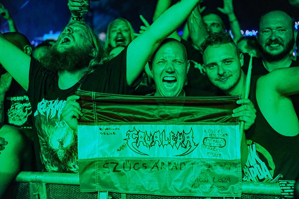 Nos, sikerült mindent úgy transzformálniuk hogy élőben ez letépte a fejedet / végtagjaidat, csúnyán beléd rúgott, majd ami még megmaradt belőled, azt belehajított a napba. Bárhová álltam az Arénában, mindenütt remek hangzás fogadott. Bárhol álltam, az emberek énekelték a dalok szövegeit. (a Gutted Sanyi pengén küldte!) Lelketsimogató old-school death / thrash feeling áradt szét a tömegben, ahogy lenyűgöző sebességgel törtek elő a dalok a Cavalera tesók kezei alól. Max remek formában volt, Igor pedig láthatóan kihozta magából a maximumot: a csávó úgy szétpüfölte módszeresen a cájgot, ahogy kell. A dalok nyers valójukban pompáztak, ahogy annak idején mind meg lett írva, az összes témaváltással együtt. Ahogy haladtunk előre a setlistben, annál brutálisabb lett a hangulat. Az olyan számok, mint az Antichrist, Mayhem, Morbid Visions, Escape to the Void megágyaztak egy olyan atmoszférát amit a későbbiekben még tovább / feljebb tudtak fokozni: amire abszolút nem számítottam, hogy lesz a második érából is nóta. Refuse / Resist és Territory. Itt végem volt. Nem gondoltam, hogy ezeket az örökzöld thrash metal alapvetéseket hallom valaha élőben. És akkor jött a nap koronája, vagyis az est fénypontja: a Mayhem énekes Csihar Attilával előadott Troops Of Doom. Ördögi black – thrash metal megsemmisülés, felsőfokon. (MZ)