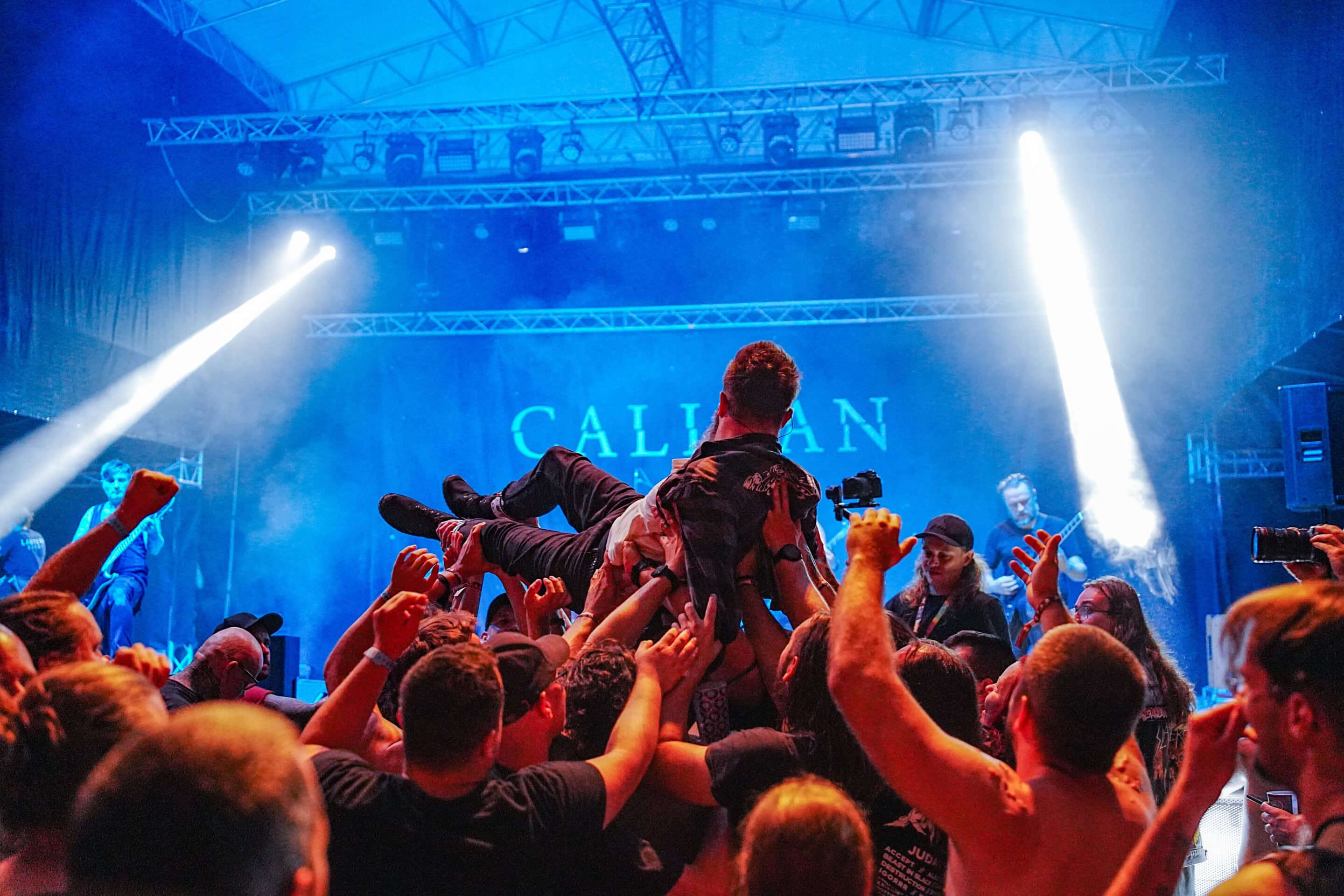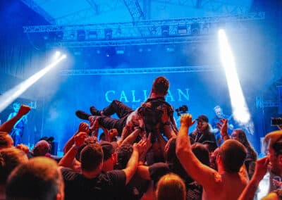 Aznap számomra az utolsó kegyelemdöfést az elviselhetetlen meleg mellett a német Caliban adta. Most találkoztam velük először, hanghordozón viszont már számtalanszor volt szerencsém hozzájuk. A Small Boy and a Grey Heaven, a Vent és a Shadow Hearts album után szem elől tévesztettem őket. Bevallom őszintén, nem így emlékeztem rájuk, viszont egy végtelenül profi és kerek produkciót tettek le az asztalra. Náluk is, mint az Unearth esetében, a hangzásra nem nagyon lehetett panasz. Vegyes énektémák, frontemberük Andreas Dörner klasszik HC-s üvöltése váltakozott Denis Schmidt gitáros tiszta énekhangjával, ami rendkívül frissítőleg hatott a durva metalcore közegben, emiatt némi modern íze lett az egésznek. Csak úgy áradt belőlük a zabolátlan energia. A régi Caliban számokhoz képest sokkal dallamosabb lett a zenéjük, a korai bárdolatlan nyersesség kikopott, viszont a düh és az őszinte érzések megmaradtak. Nem gondoltam volna, hogy ennyire be fog jönni, amit a Metal.hu Aréna utolsó előtti fellépőjeként az arcomba tolnak, így csak azt tudom mondani, soha rosszabbat, ez is egy kiváló koncert volt. Részemről elájulás és alvás következik. (MZ)