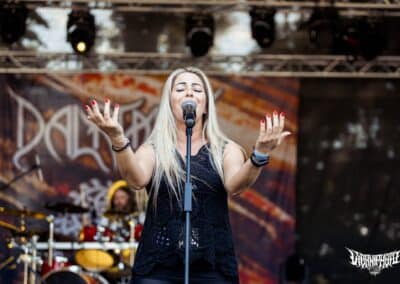 Forró, forró, forró. Leginkább így lehet jellemezni a Dalriada koncertjét. A Dalriada-bulik örök kedvenc része számomra az lesz, amikor népdalokkal beénekelnek az elején – kiváltképp Ficzek Andris. A maratonos buliban idén két pláne volt: nagyobb közönség előtt itt debütált az új basszusgitáros, Sulyok Adrián, aki Molnár Istvánt váltja, aki sajnos családi okok miatt nem tudja folytatni zenekari pályafutását. Tanúsítom, Adrián jól szerepelt, és bár láthatóan nem engedte még el magát, lejátszotta, amit megkövetelt a haza. A másik pláne pedig az, hogy 2010 óta először végre nem volt Hajdútánc, helyette volt azonban Szondi Két Apródja és természetesen “a Walesi” is, amit bizonyára sokan a “nem-casual” rajongók közül nagyon is üdvözöltünk. A rekkenő hőség ellenére is volt egy-pár kisebb pogó, sőt, circlepit is, szóval minden tisztelet kijár a közönségnek! Azt inkább szeretném elfelejteni, hogy pár, bizonyára már nem szomjas ember a lassabb részek alatt is pogózott “a semmire”, de hát ezek a rockfesztiválok már csak ilyenek… (Vica)