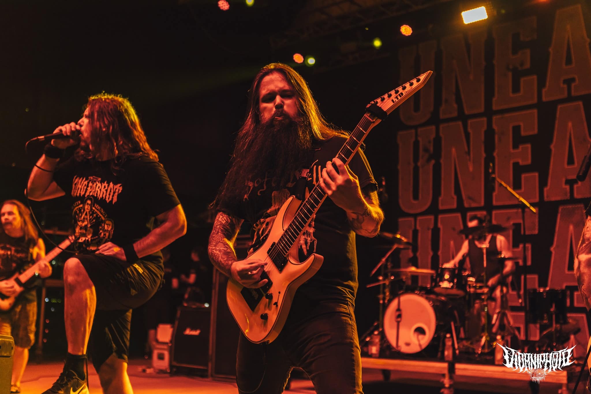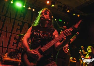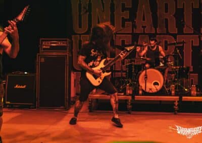 Nem sok időm volt felocsúdni, az Unearth volt a következő banda, akit megnéztem. Homályosak az emlékeim, mintha már láttam volna őket még nagyon-nagyon régen a Kultiplexben… de nem mernék rá megesküdni. Mindenesetre ez a koncert nekem beadta a tutit. Az amcsi csávók felszántották a deszkákat, olyan energiákat mozgattak meg, amire csak egy ilyen zenét játszó együttes képes. A maga nemében súlyos volt, amit csináltak, de nem úgy, mint egy death vagy black metal zenekar. Ez a fajta modern metalcore továbbra sem számít divatosnak 2024-ben, viszont aki annak idején megszerette ezt a stílust, az biztosan várta ezt a találkozást. A hangzás még tisztább / balanszáltabb volt, mint a Krisiun esetében, a PA rendszert szinte szétvetette a kraft. Hangerőben (fizikálisan is) érezhetően toltak a potikra, ami csak tovább emelte az amúgy néhol nekem kellemesen nosztalgikus hangulatot. Azért élőben egy Zombie Autopilot, Giles, vagy egy The Wretched, the Ruinous elég fullosan átjött. Az Unearth olyan, mintha még mindig a pályája zenitjén lenne, vagyis mintha nem telt volna el idő az általuk létrehozott metalcore univerzumban. Furcsa dolgok ezek, de amíg ilyen bivaly bulikat adnak, addig emelem kalapomat. (MZ)