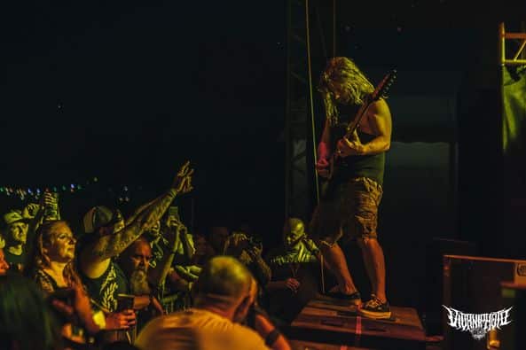 A vasárnapi záróprogram mellett a pénteket vártam a legjobban, ezért igyekeztem a lehető legkipihentebb és a lehető leghidratáltabb formában nekikezdeni a napomnak. Ez a reggelire megivott 3-4 liter víz elfogyasztásával asszem sikerült is, majd gyors bundáskenyér reggeli a Borracho büféjében, egy szemkipattintóan finom kávé a Wömbat bódéjában és GO GO GO! A dunaújvárosi Misfit River már a programjának közepén járhatott, amikor becsatlakoztam, nagyon kellemes melodikus deathcore muzsikát tolt a zenekar, melynek az élén a Darkmess brutális torka, József Mátyás állt. Pontosabban hörgött. Ügyesen nyomták a rettentő kegyetlen hőség ellenére is, sőt ami szinte mindennap meglepő és egyben szívet melengető volt számomra, hogy egyetlen banda sem játszott üres nézőtérnek. Mindig voltak, akik vették a fáradságot és megnézték az előadókat, ez becsülendő és ritka dolog. (MZ)