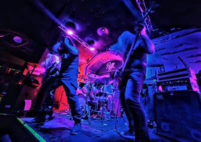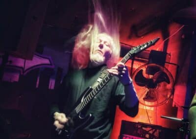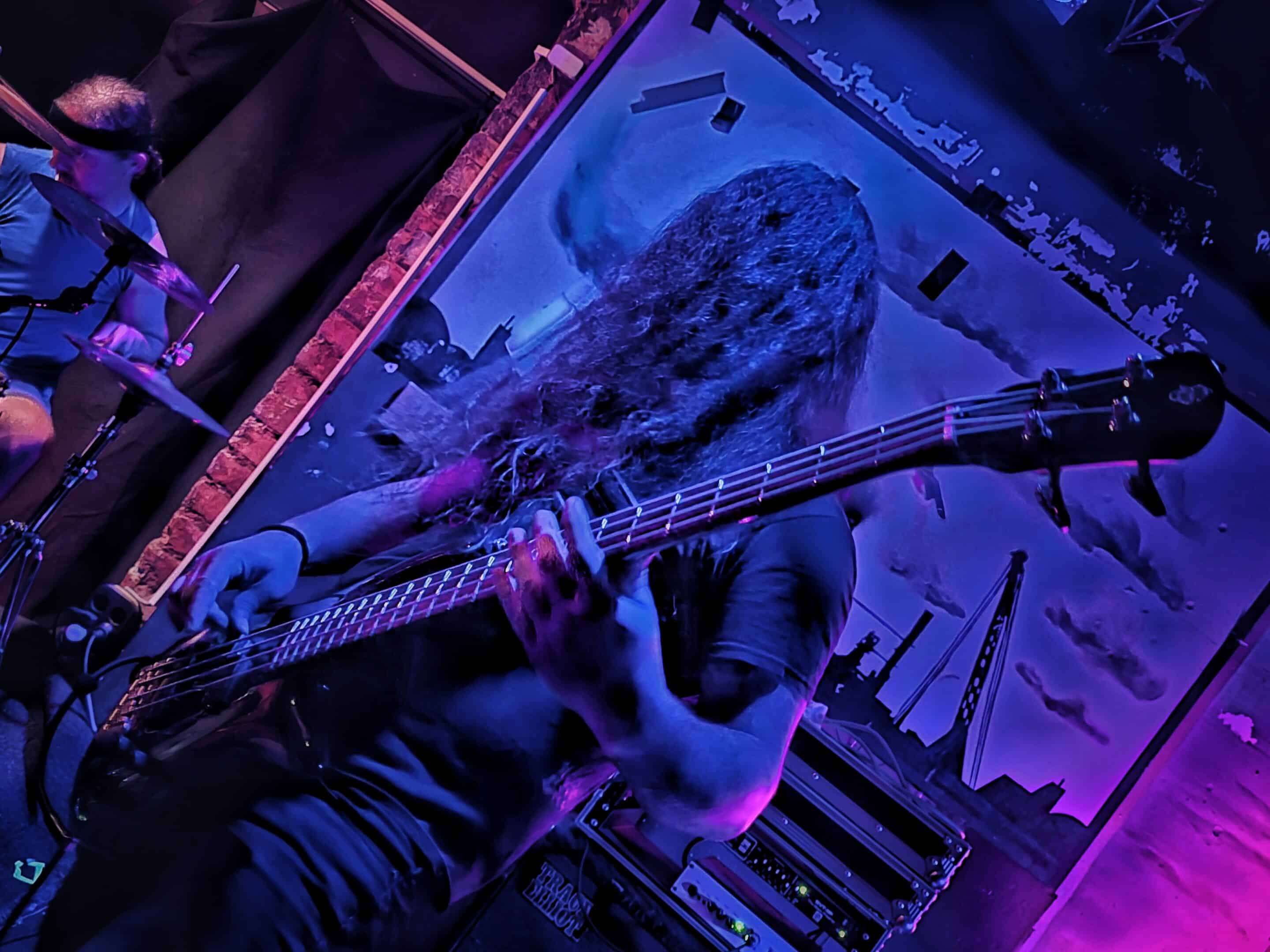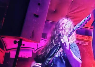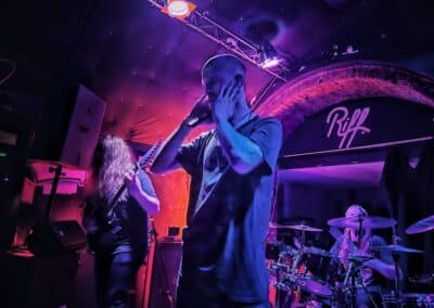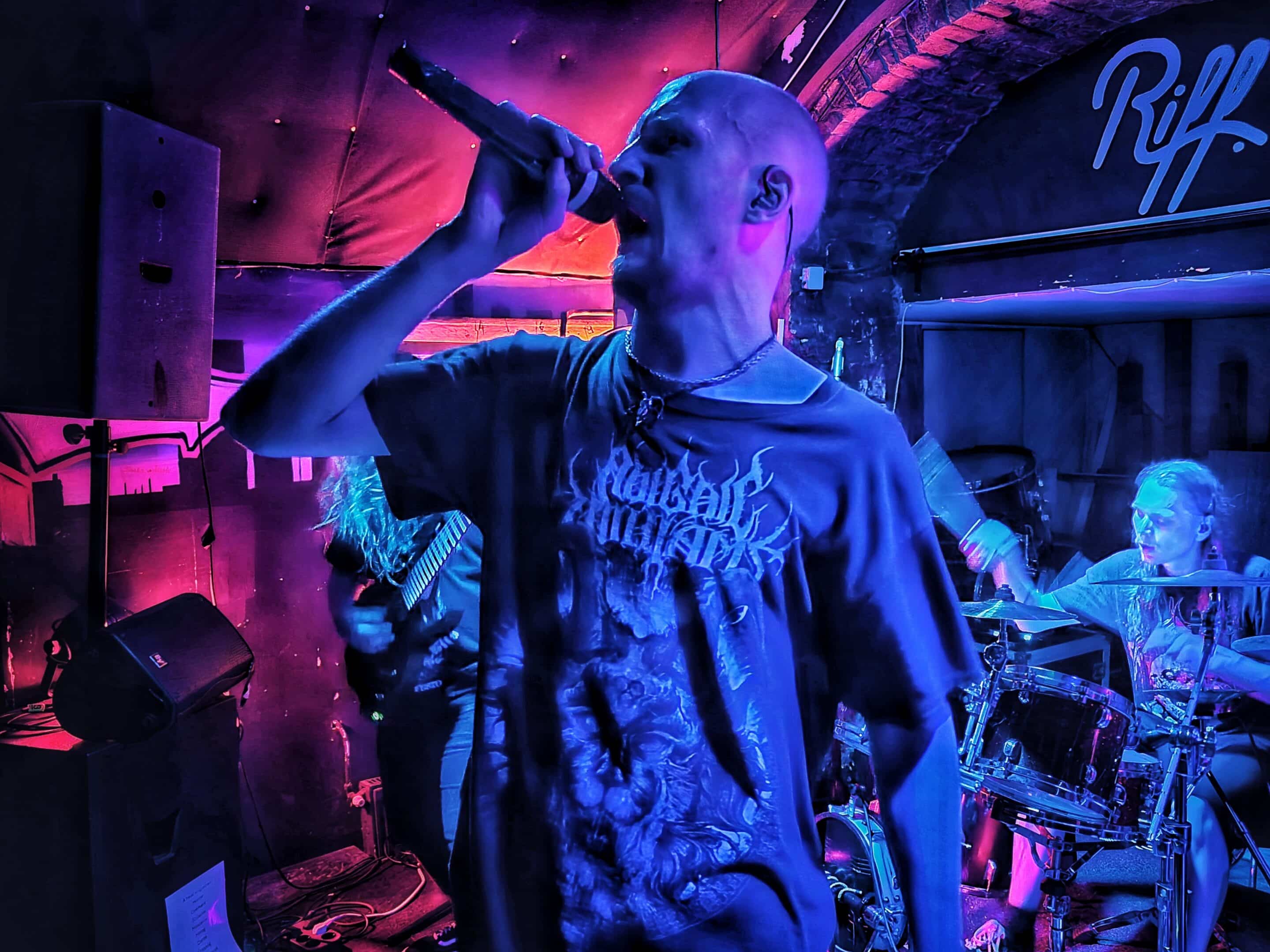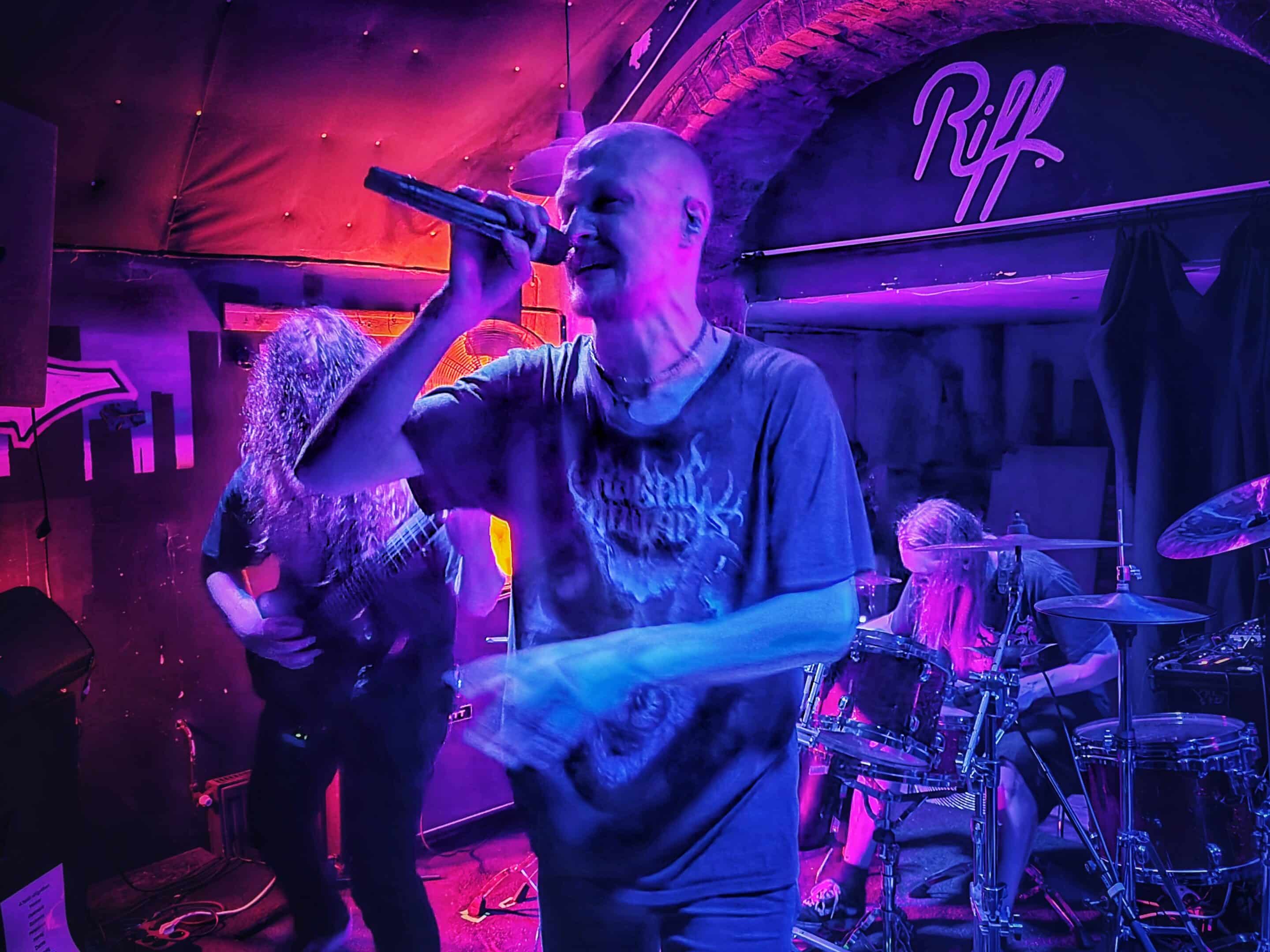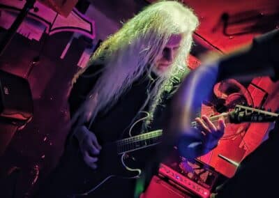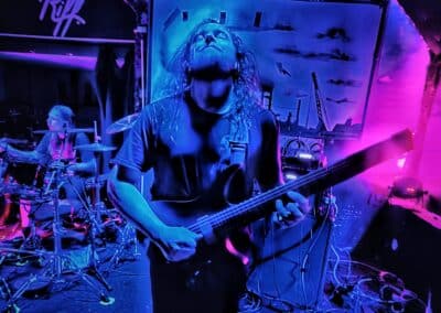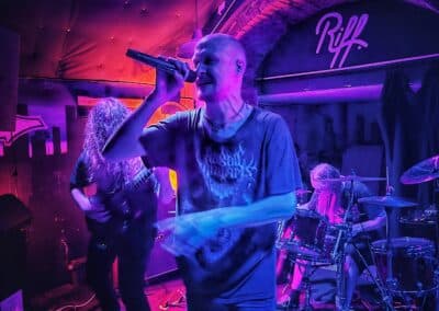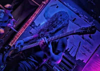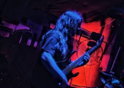 A frontemberük el is mesélte, hogy most nincs itt az egyik tag a bandából, mert ő otthon maradt így basszusgitár nélkül álltak fel a színpadra. Őszintén bajos lett volna az a plusz egy fő azon a kicsi színpadon, így legalább elfértek és elég sokat mozogtak, így is kellett nekik a hely. Elemi erővel tolták a halálfémet, az énekesük szerintem egyetlen másodpercre sem maradt mozdulatlan. Két dal között megjegyezte a gitáros is és az énekes is, hogy milyen meleg van. Hát igen ahogy begyűlt a tömeg meleg lett bent és ők meg a színpadon sokat mozogtak teljesen le is izzadtak folyamatosan törölgették magukról az izzadtságot. Legutóbbi lemezük, a Wormtales, 2024 októberében jelent meg, erről és az előző kettőről is játszottak.